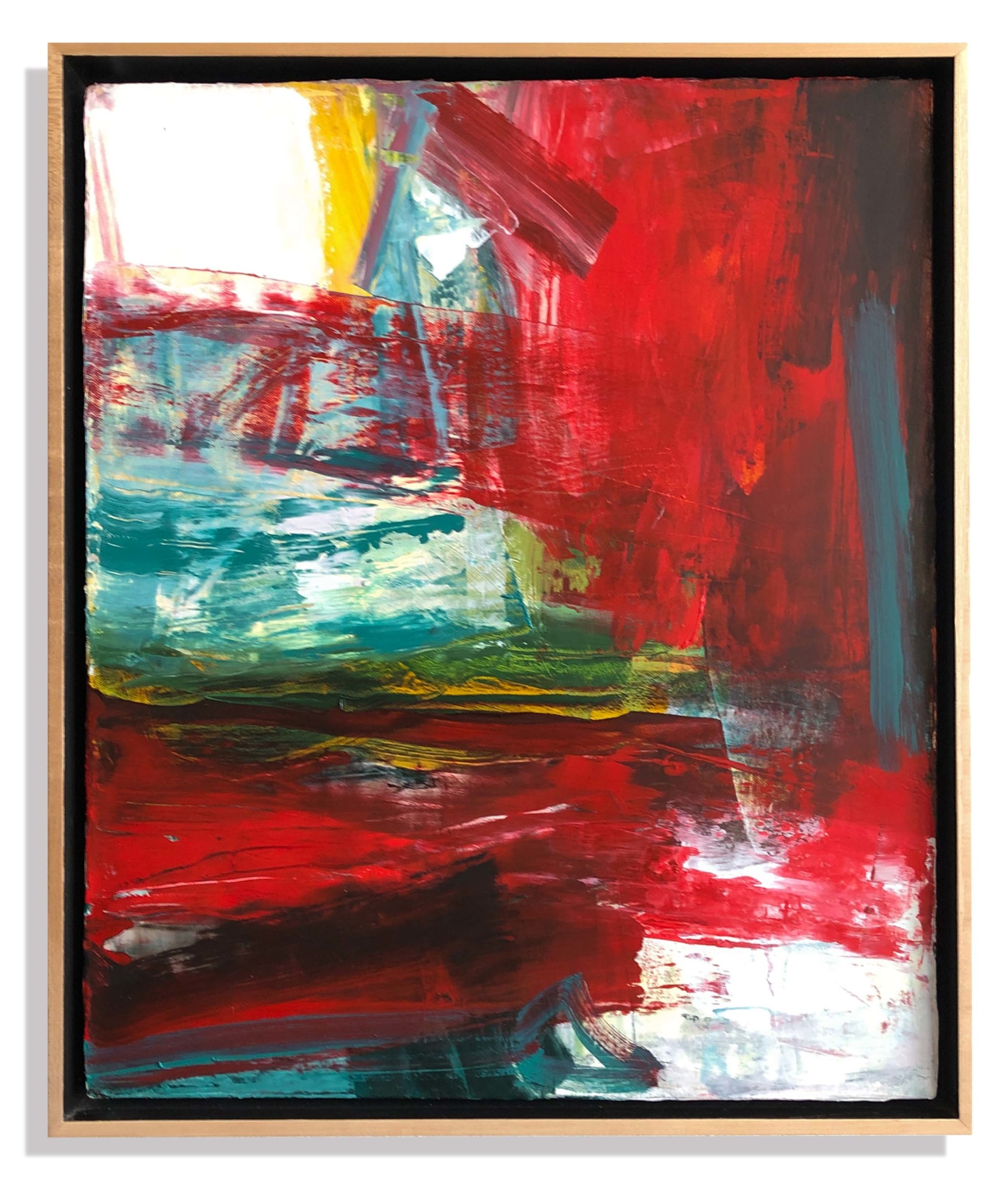 This small, oil on canvas, is an abstract remembrance of the island of Nantucket. Taking long walks out in the landscape with his dogs is often the biggest source of inspiration for Michael's work. Suggested here the sky, sea and weather of the Island.
