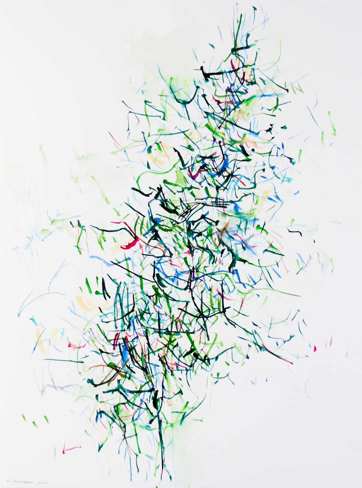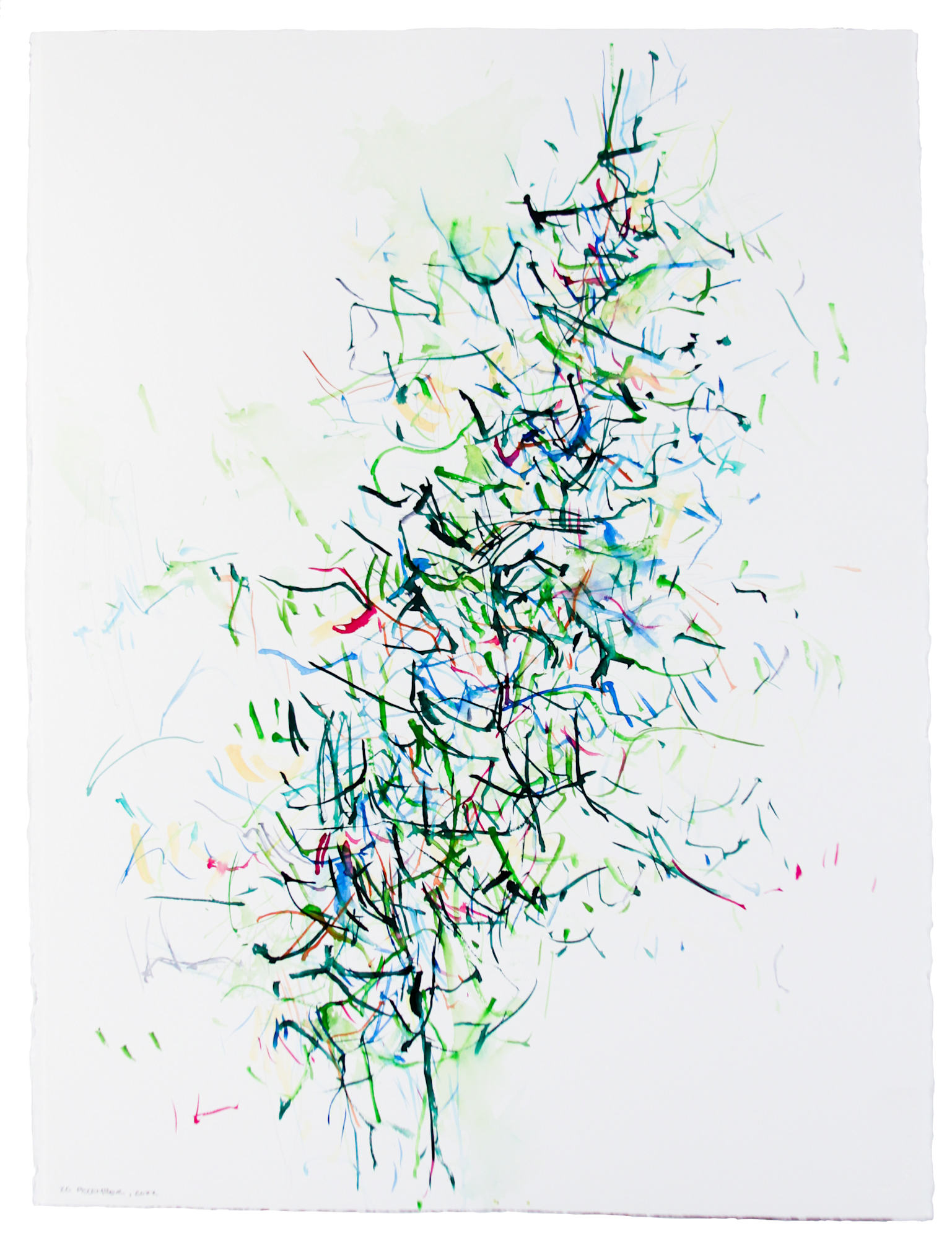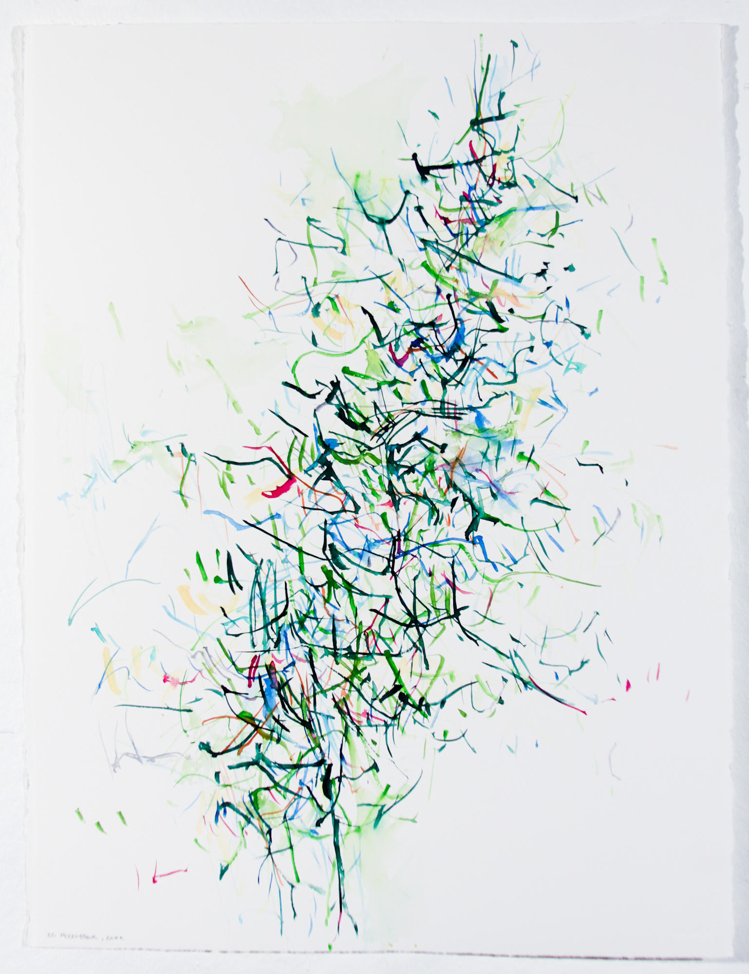 An improvisational watercolor on Arches paper that has the feel of a Christmas tree. One of a number of watercolor paintings that are inspired by trees.