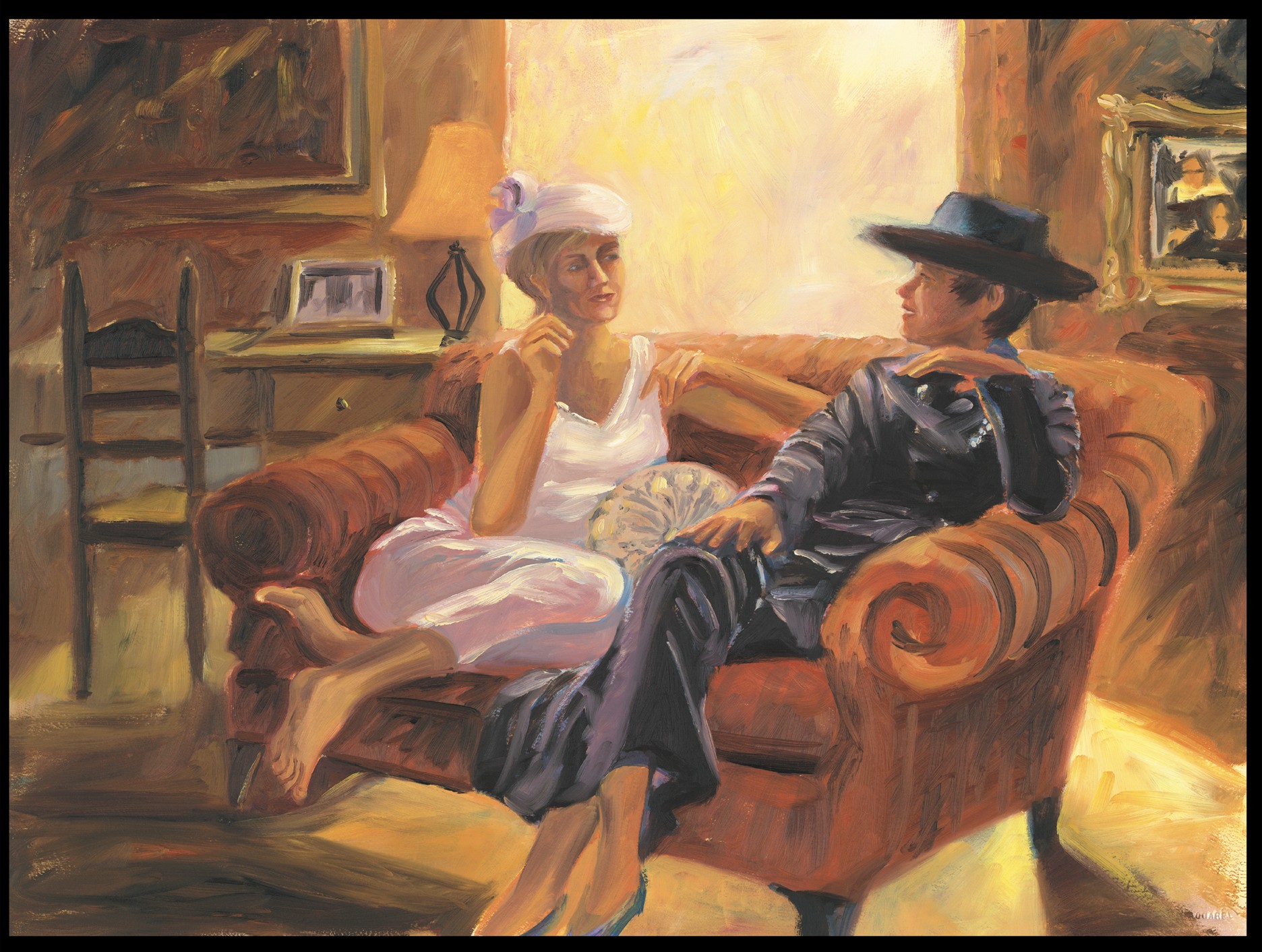 Couch Conversations - Oil on Paper - Framed/Glass