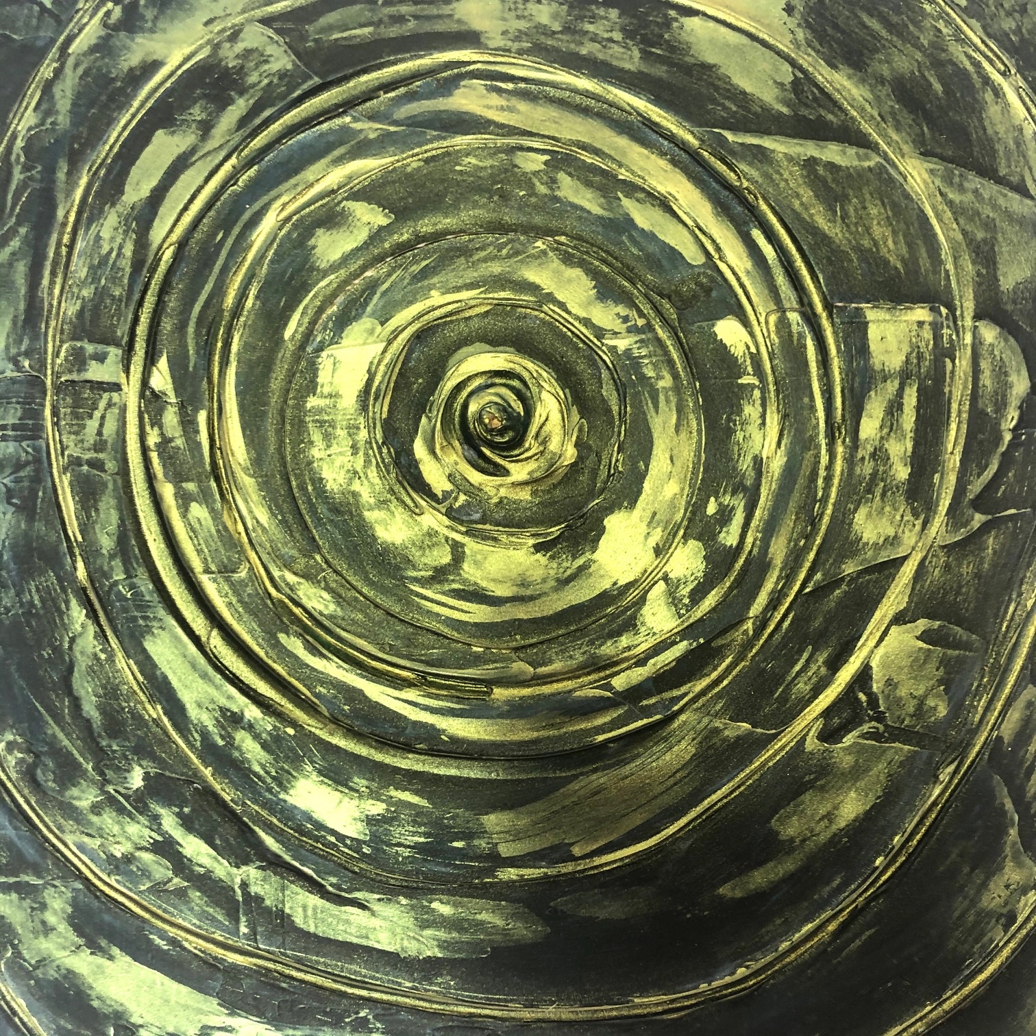 Michele LeMaitre's 2D Interactive Sculptural Mixed Media represents the surface of bodies of water, with bold colors that change with the movement of your body.