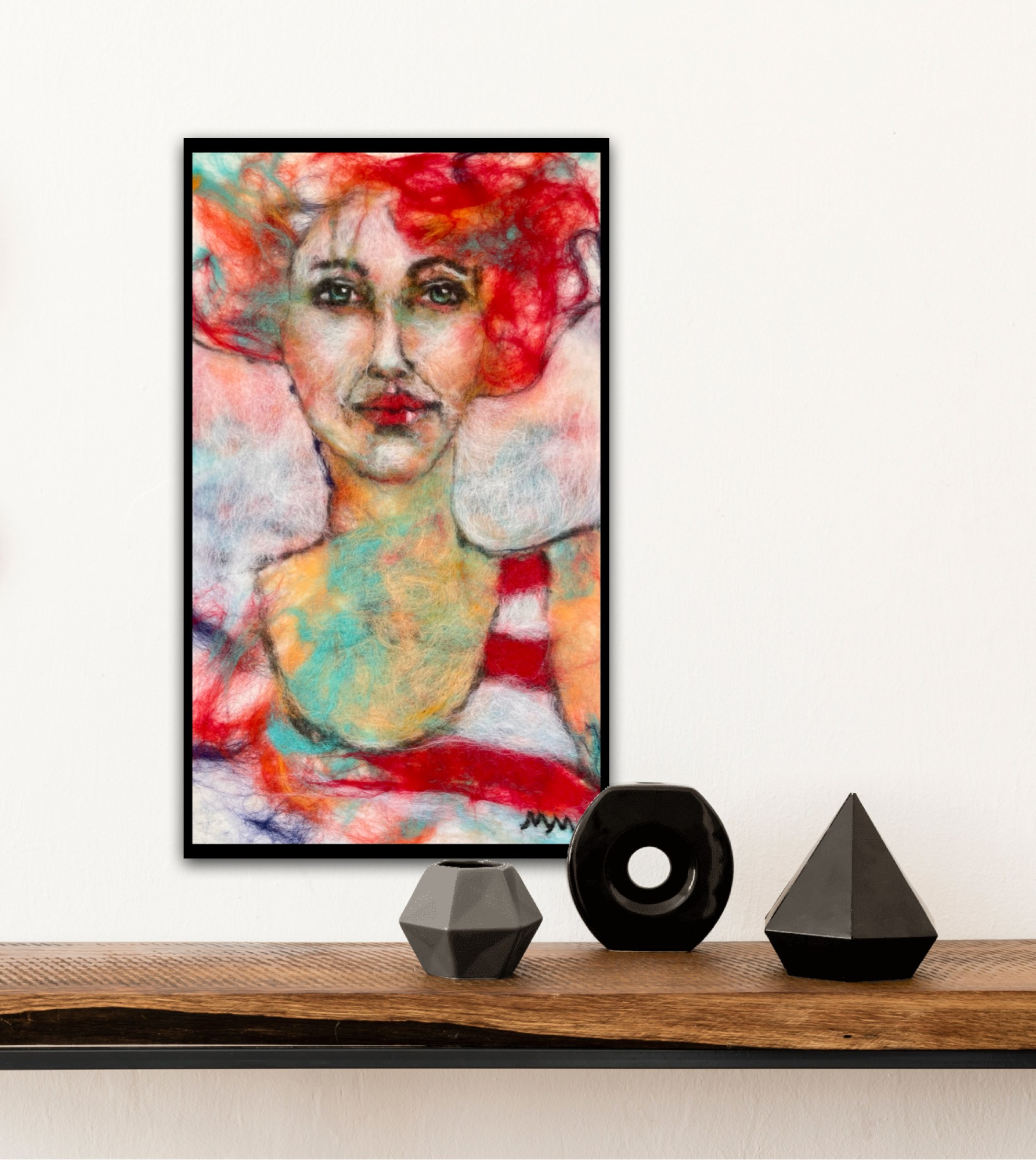 Wet felted and needle felted on fabric. Stretched over foam core board. Ready for framing.