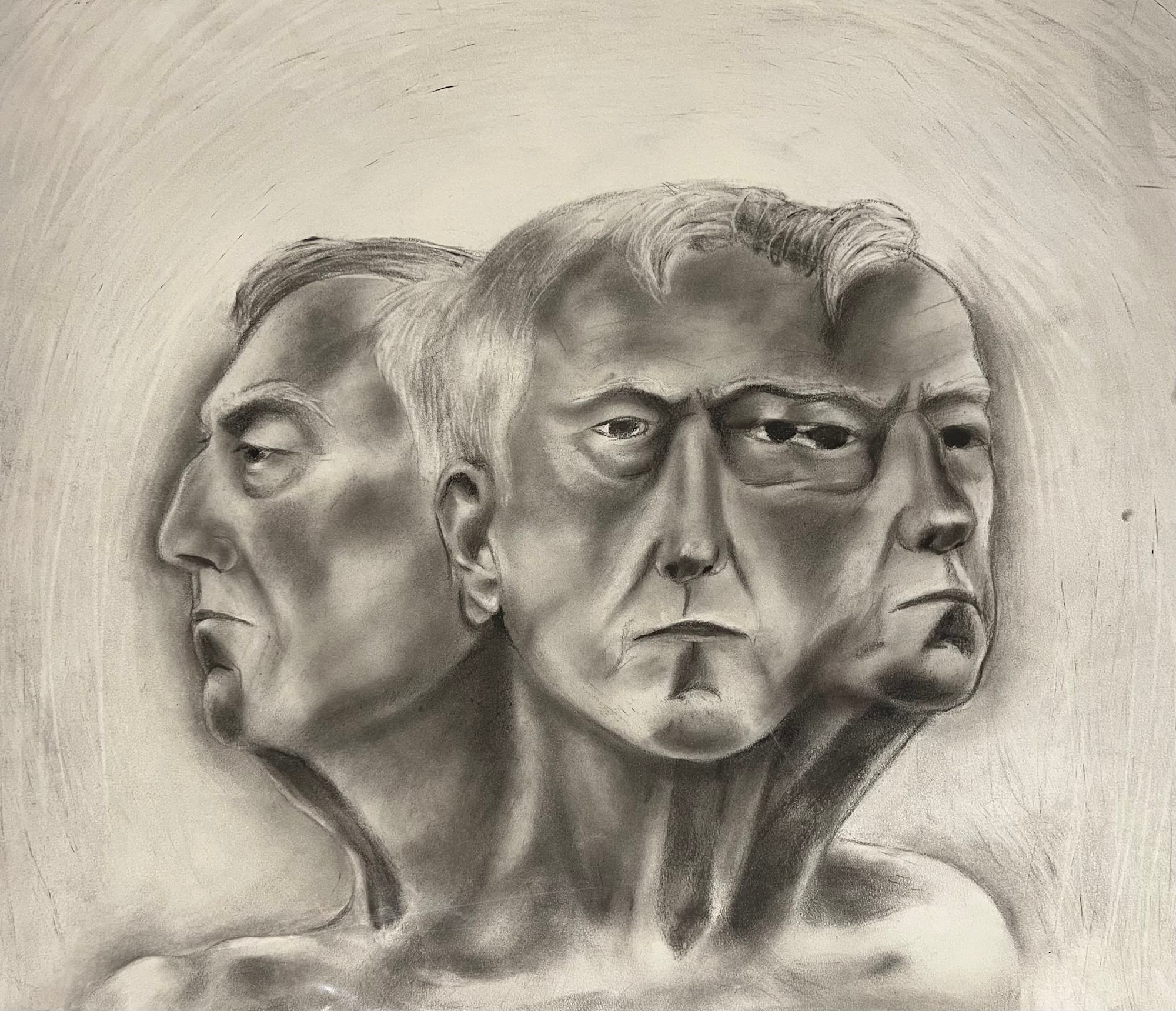 Drawn from life in academic setting, utilizing multiple poses to create a surreal portrait