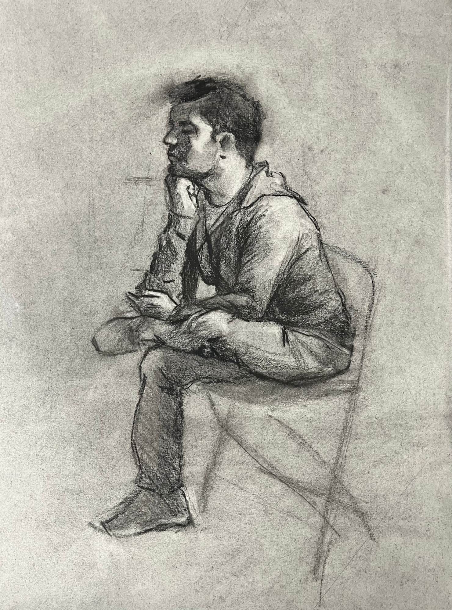 Drawn from life while model scrolled on phone at Catalyst Studios