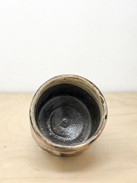 Colorful yunomi with bear. Bold brush strokes of black provide an almost checkerboard pattern.