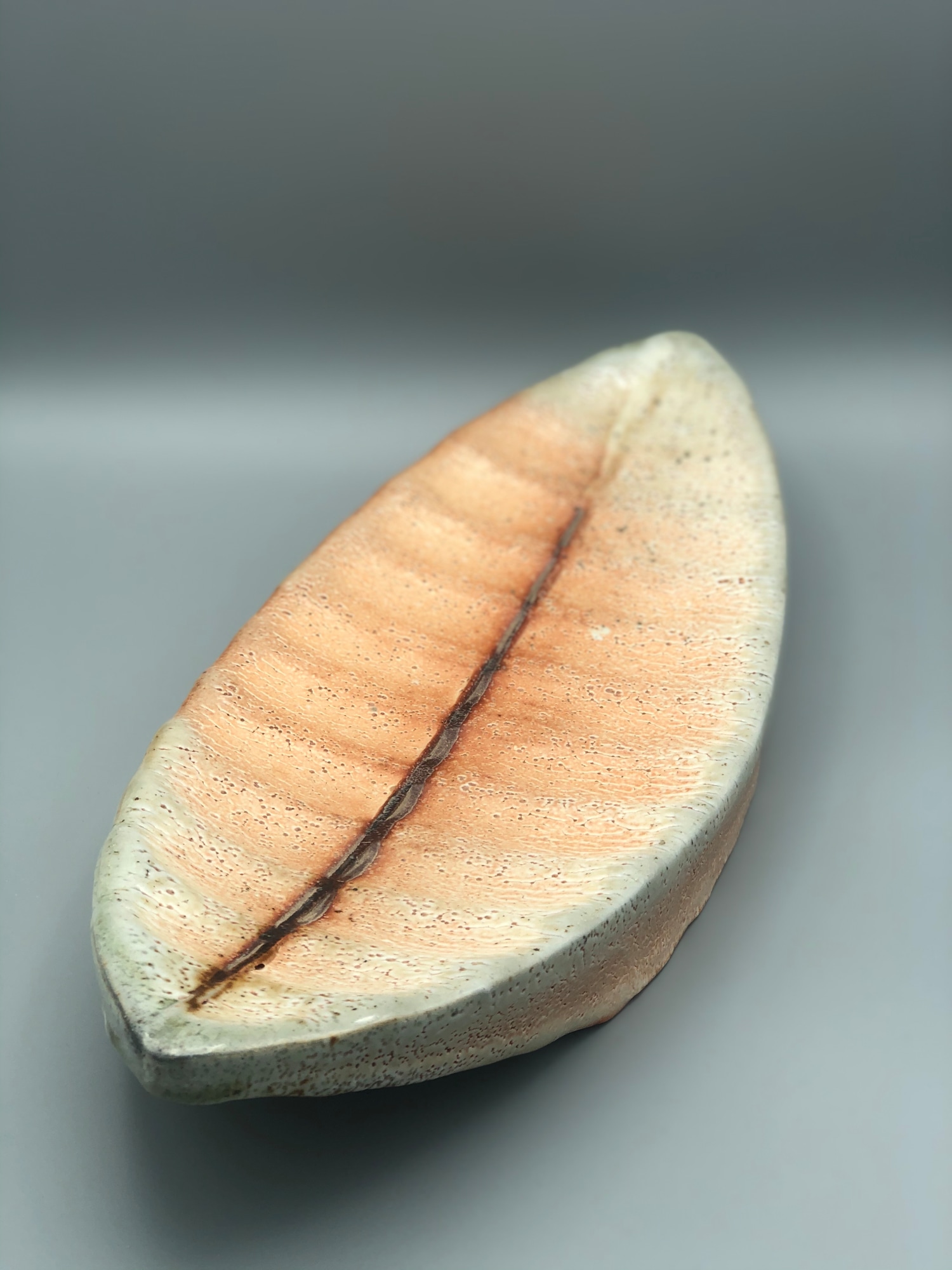 - Hollow Boat Form (Ribbed Leaf-Shaped Slab with Stripe), 2019