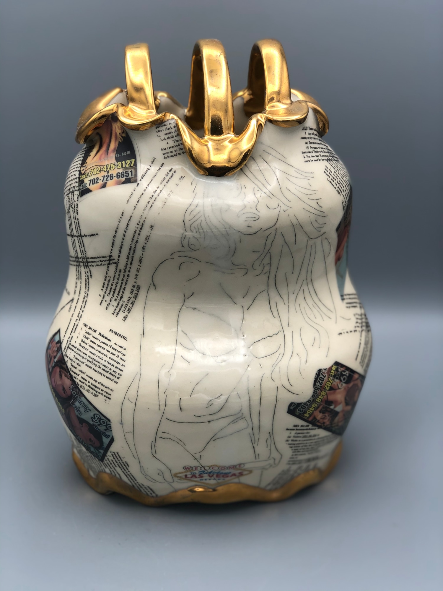 Nevada Sex Worker vase; one of three made during the artist's residency at Clay Arts Center of Las Vegas.