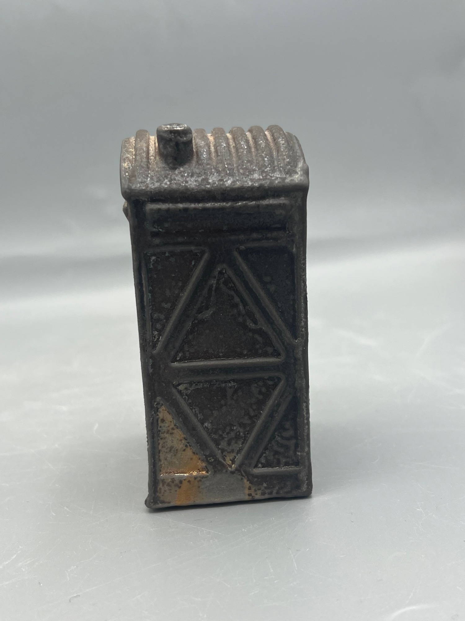 This slipcast Porta-potty was made by the artist during his experiments at SIU Edwardsville in 2022. It bears a comical price tag from when work was being priced for the late 2022 student sale. Gift of the artist.