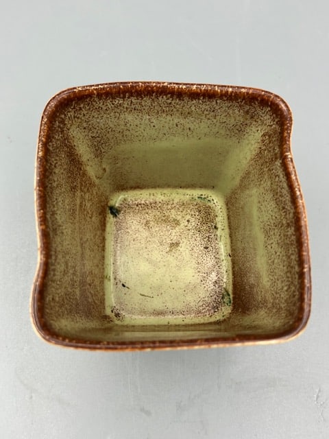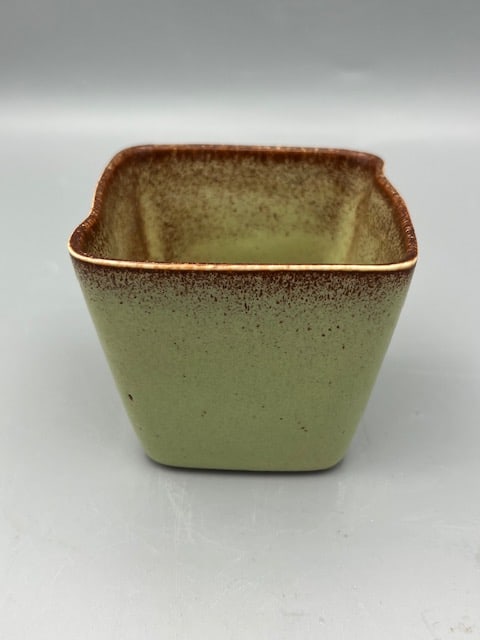 Based in Burlington Vermont, Stanley Ballard was a very well regarded and prolific studio pottery artist until 1960. He trained at Alfred University, considered the best ceramics department in America. His work is daringly simple at a time when decoration was the prevailing style. He uses just a few pale glaze colors, often with a darker “chocolate” edge. These pieces may be sold separately– price is per item. Original paper labels still intact.