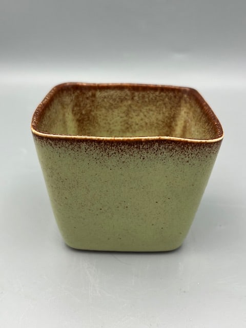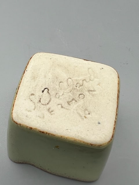 Based in Burlington Vermont, Stanley Ballard was a very well regarded and prolific studio pottery artist until 1960. He trained at Alfred University, considered the best ceramics department in America. His work is daringly simple at a time when decoration was the prevailing style. He uses just a few pale glaze colors, often with a darker “chocolate” edge. These pieces may be sold separately– price is per item. Original paper labels still intact.