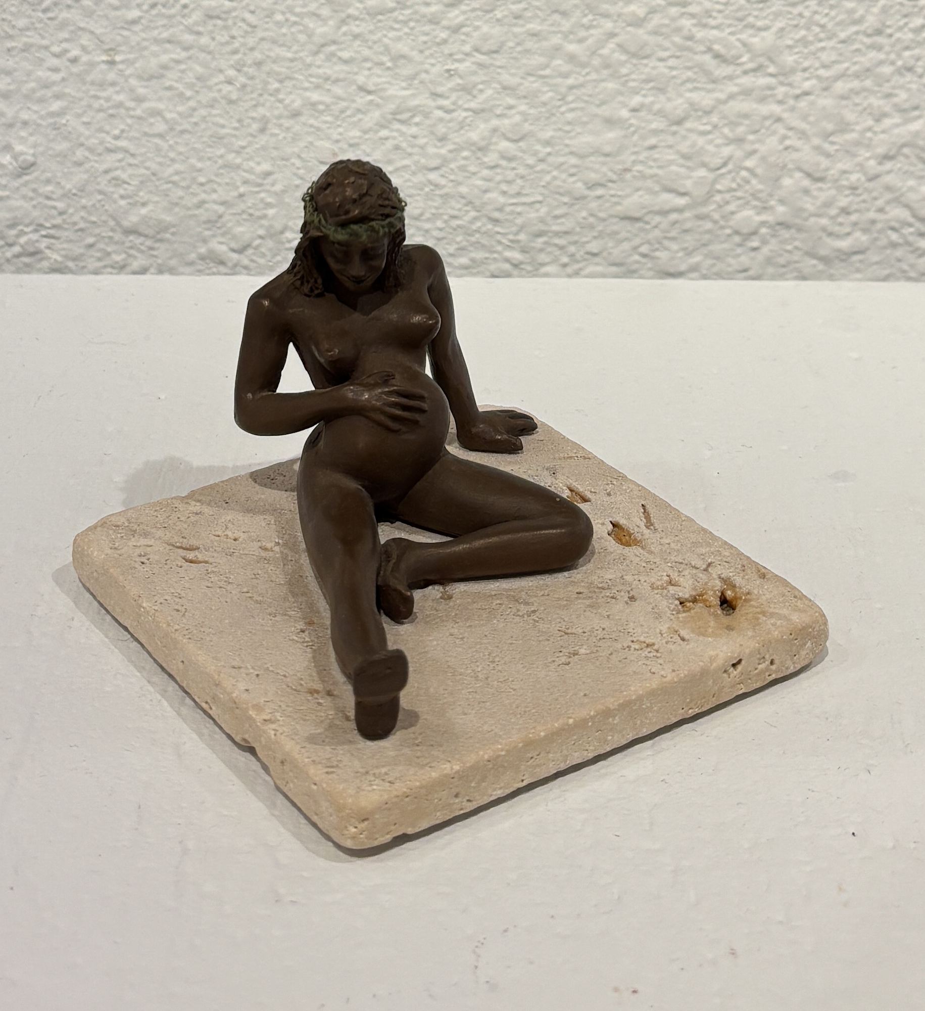 Cold Cast bronze with hand dyed yarn and check glass beads