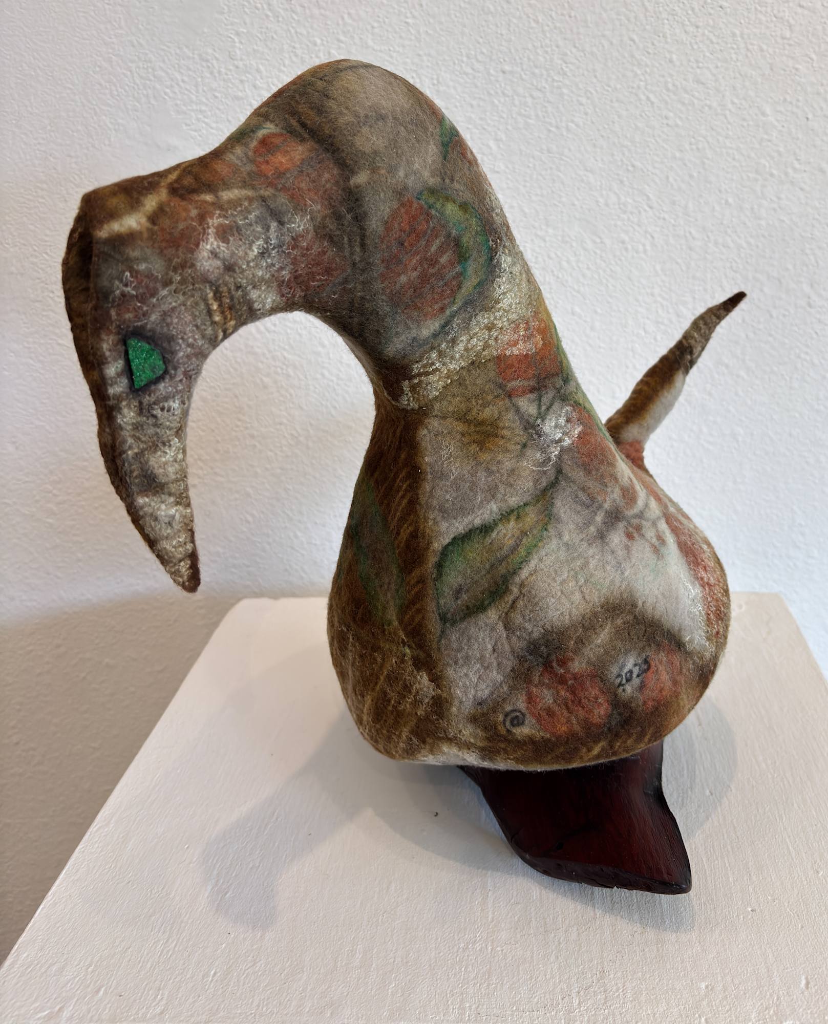 Eco-printed and painted handmade felt, rainbow druzy, manzanita