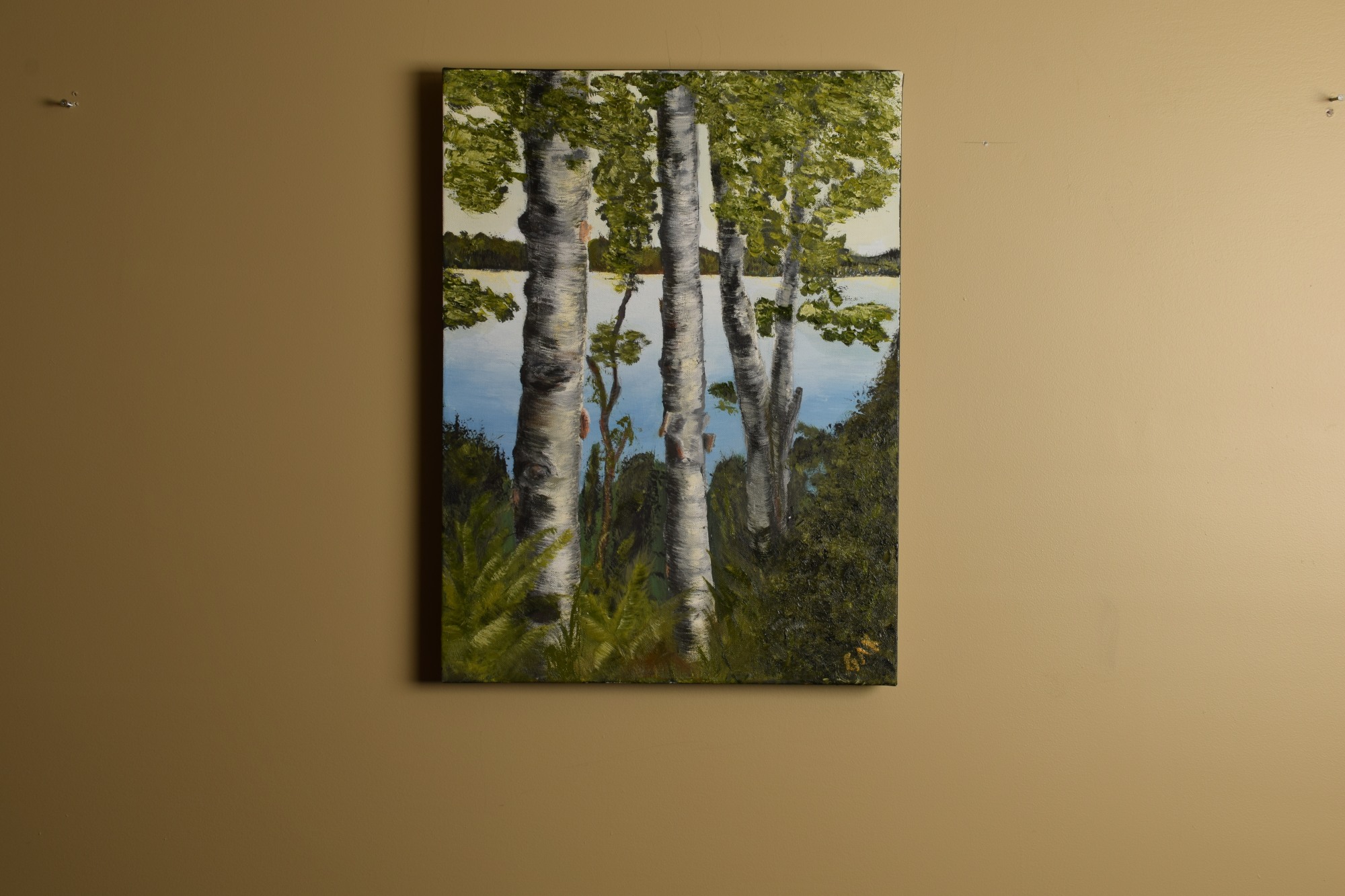 An early painting on an amazingly pretty Lake. Birch trees are a favourite.