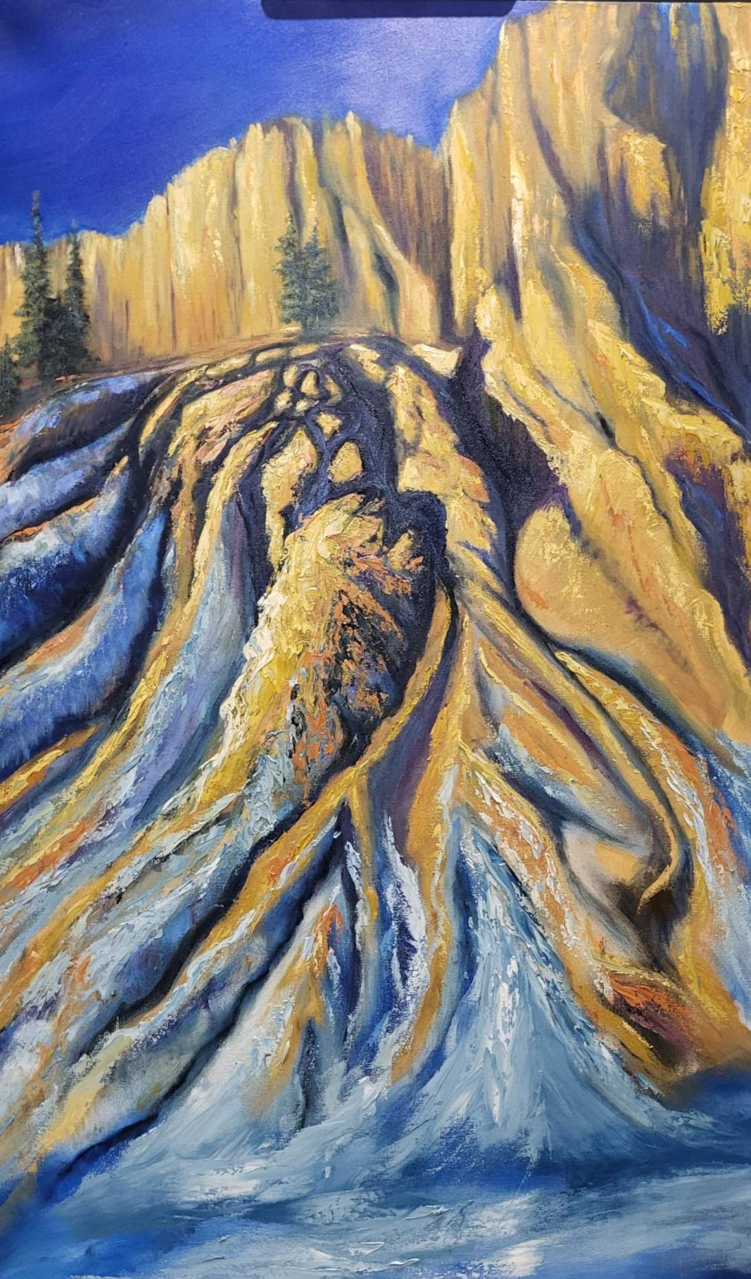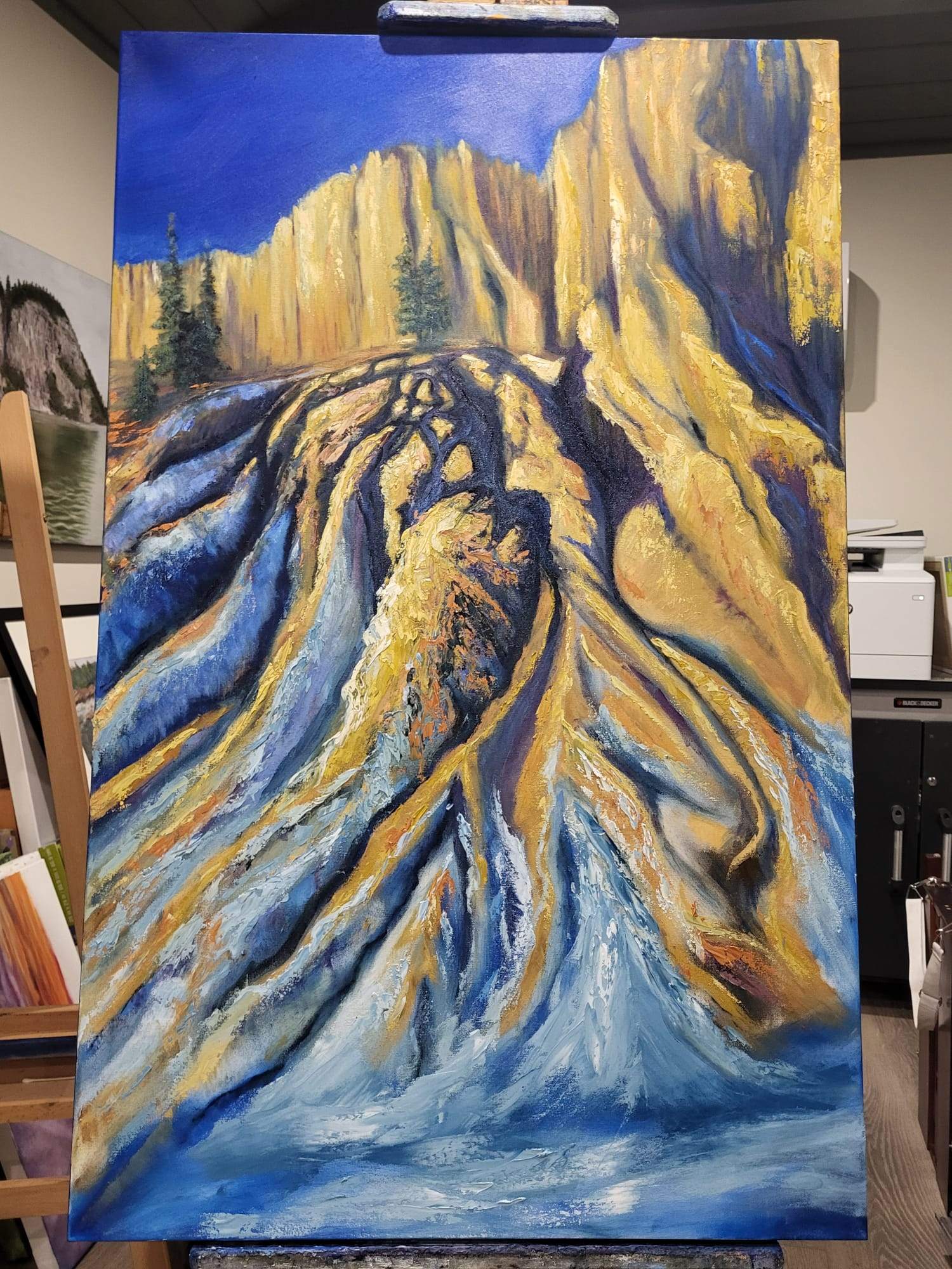 I am often taking pictures driving through the Rockies on the drive to see our Daughter who lives near Nelson BC. It's always a highlight seeing the Hoodoos and this has inspired me to paint this painting.