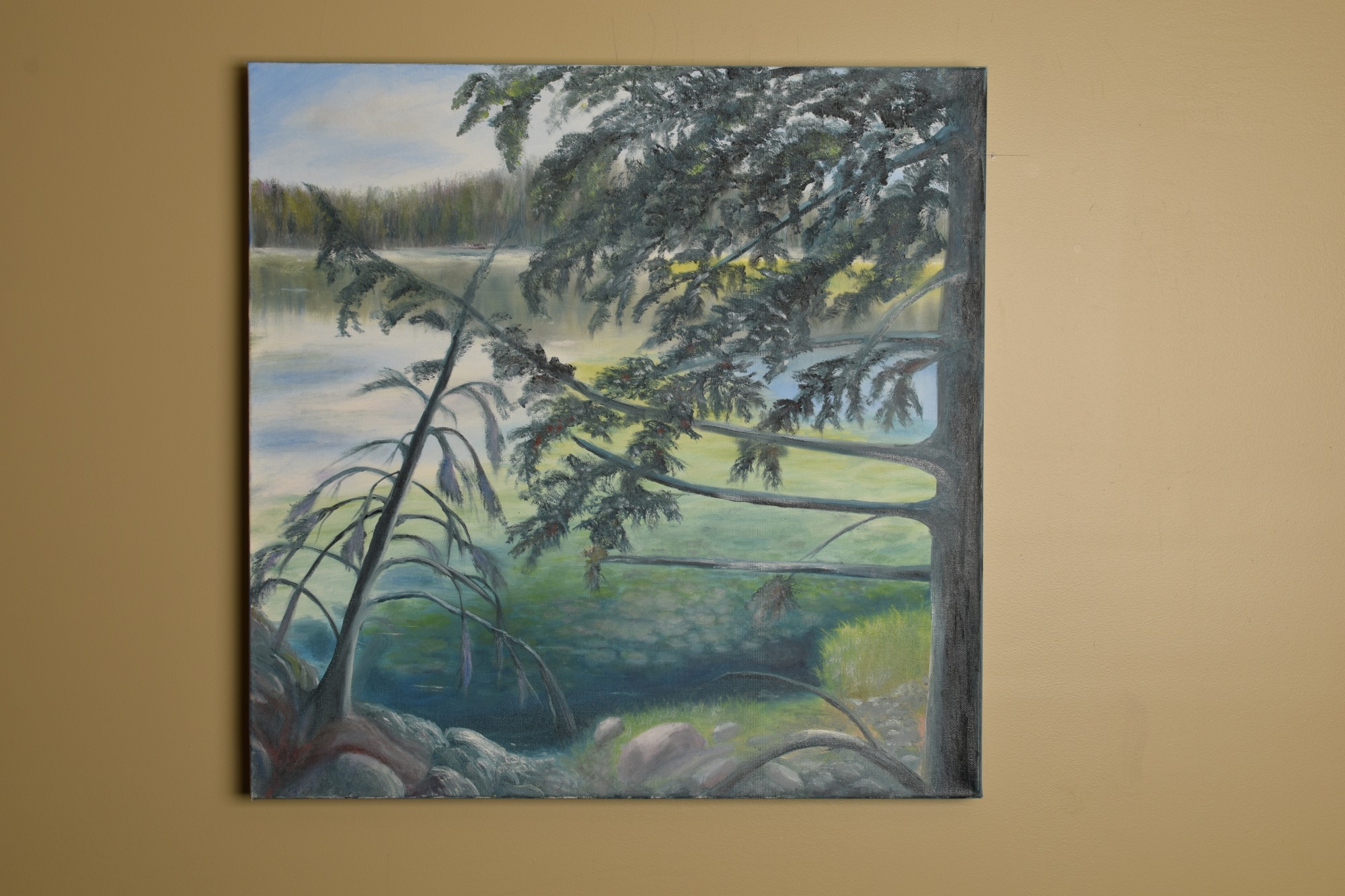 Resting on the shoreline of a small northern lake. The Lake has the shape of a shoe print and is home to many birds, Smallmouth Bass, minnows and a myriad of other marine life. It just breathes life.