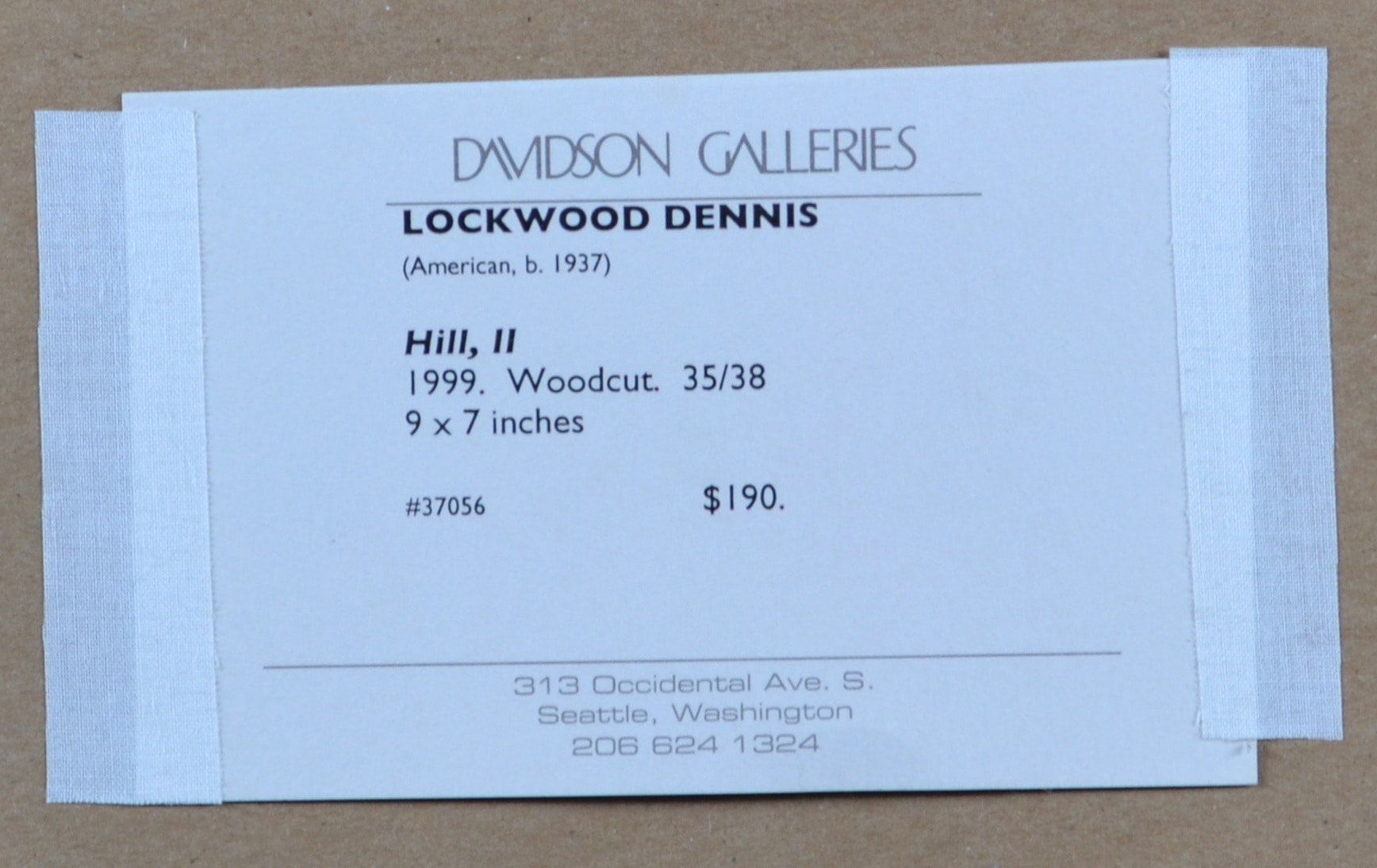 - Signature: Signed in pencil 'L Dennis' the lower right hand corner. Edition in pencil '35/38' in the lower left hand corner. Named in pencil ''Hill', II' in the lower center.