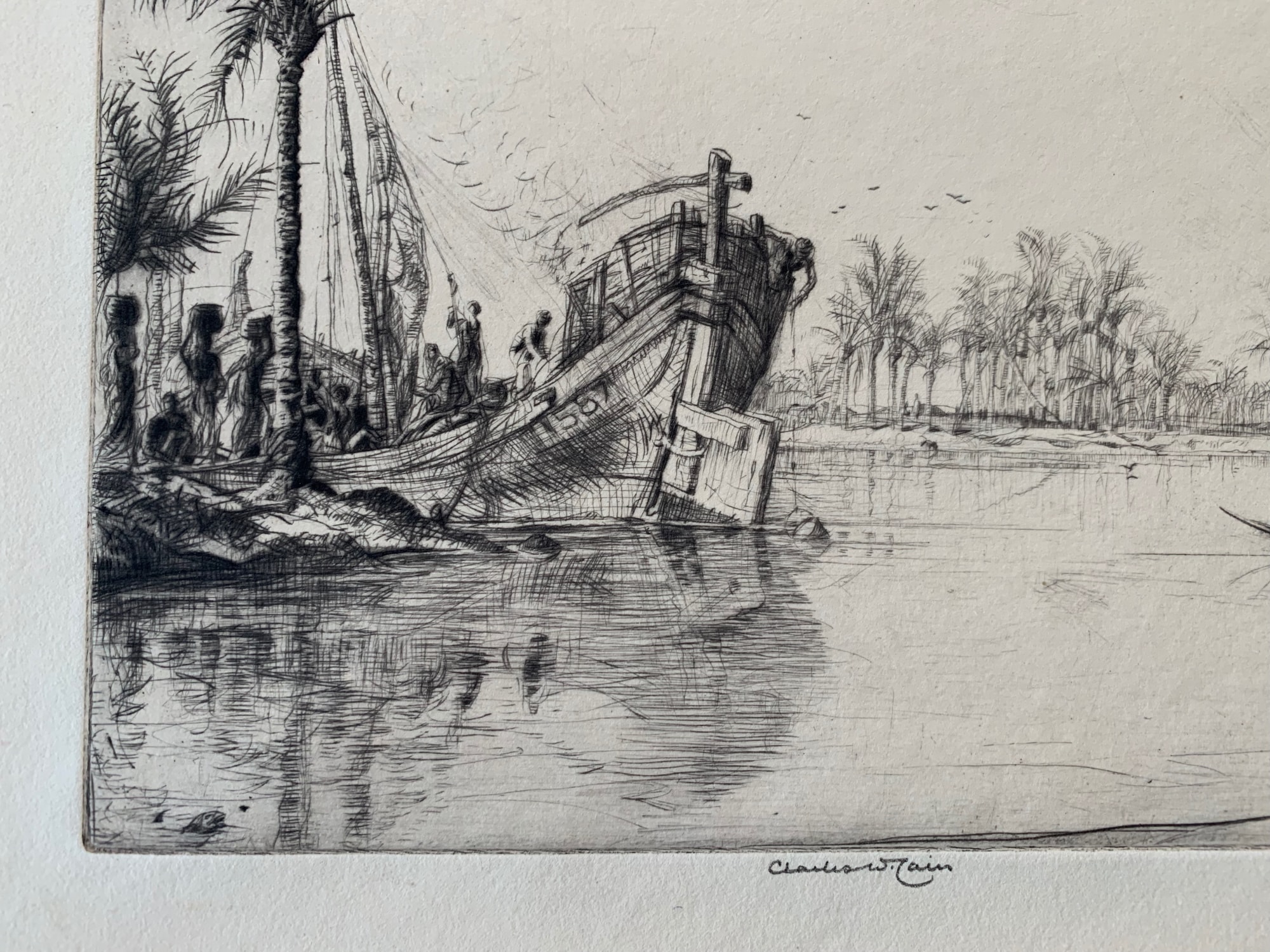 The etcher Charles William Cain (1893 - 1962) travelled in the Middle East, and lived in Baghdad for some years. A student of Camberwell School of Art, he was then an illustrator and cartoonist for the Johannesburg Star. During the Great War, he served with the Border Regiment in India and Mesopotamia until the Armistice. In 1920-21, he studied at the Royal College of Art under Frank Short.