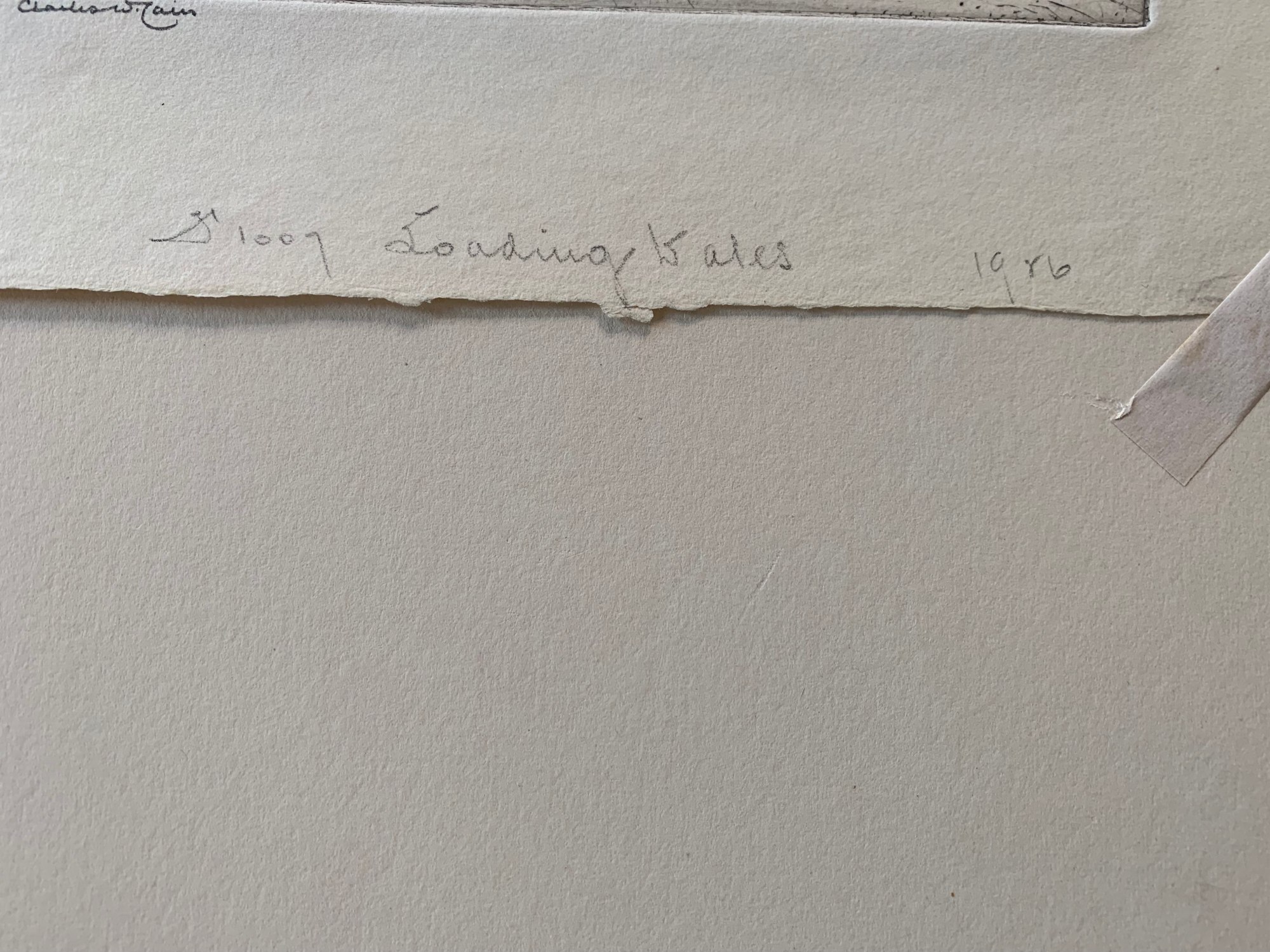 - Signature: Signed in black ink "Charles W Cain" lower center. Initialed "CW" with larger 'C' within image lower left.