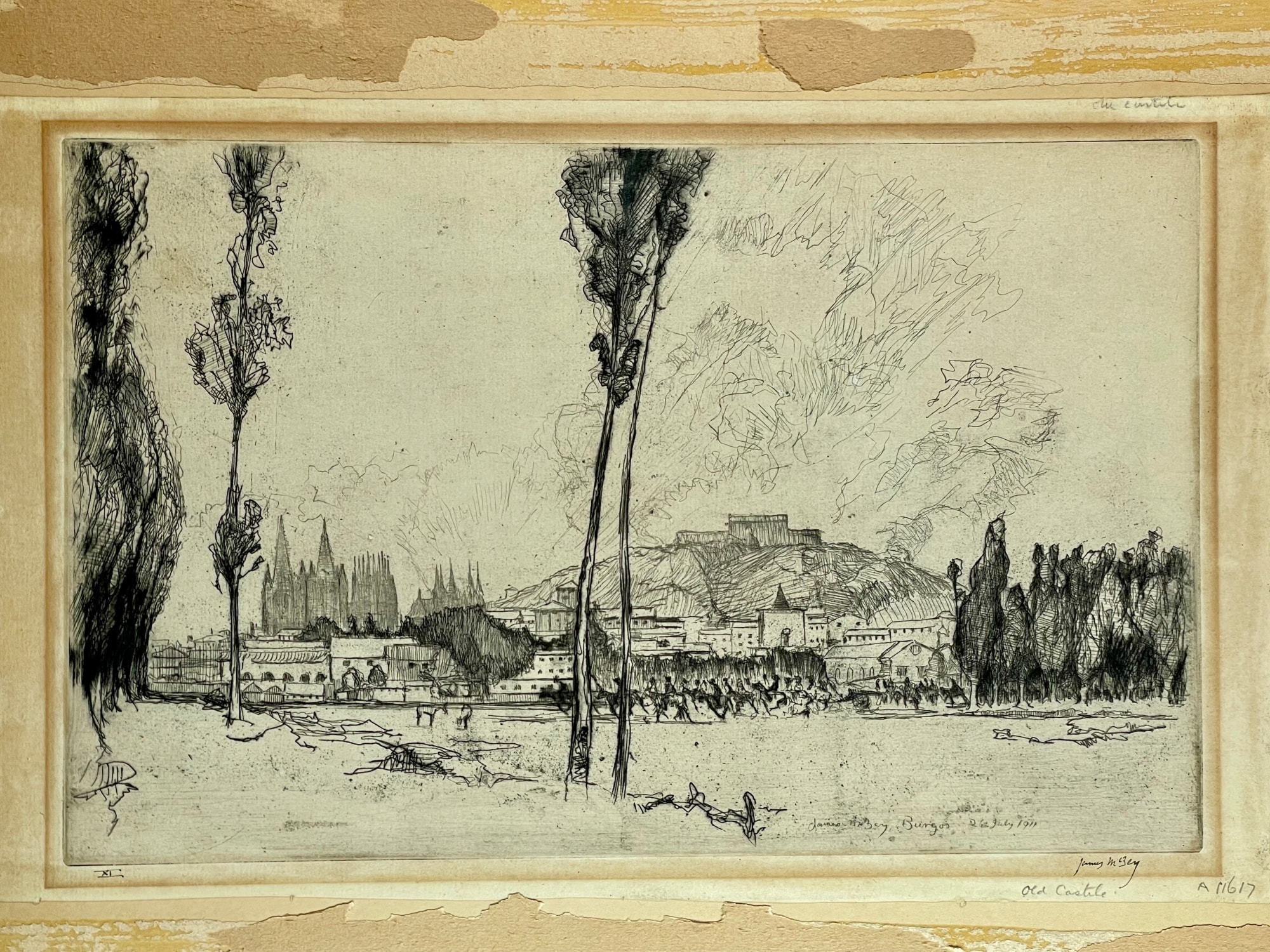 - Signature: Signed lower-right corner in pen. Edition XI in pen lower-left in pen. Signed in plate lower center-right. Signed in plate Burgos 26 July 1911 lower right-hand corner. Titled Old Castile in pencil lower right-hand corner below previous frame line.