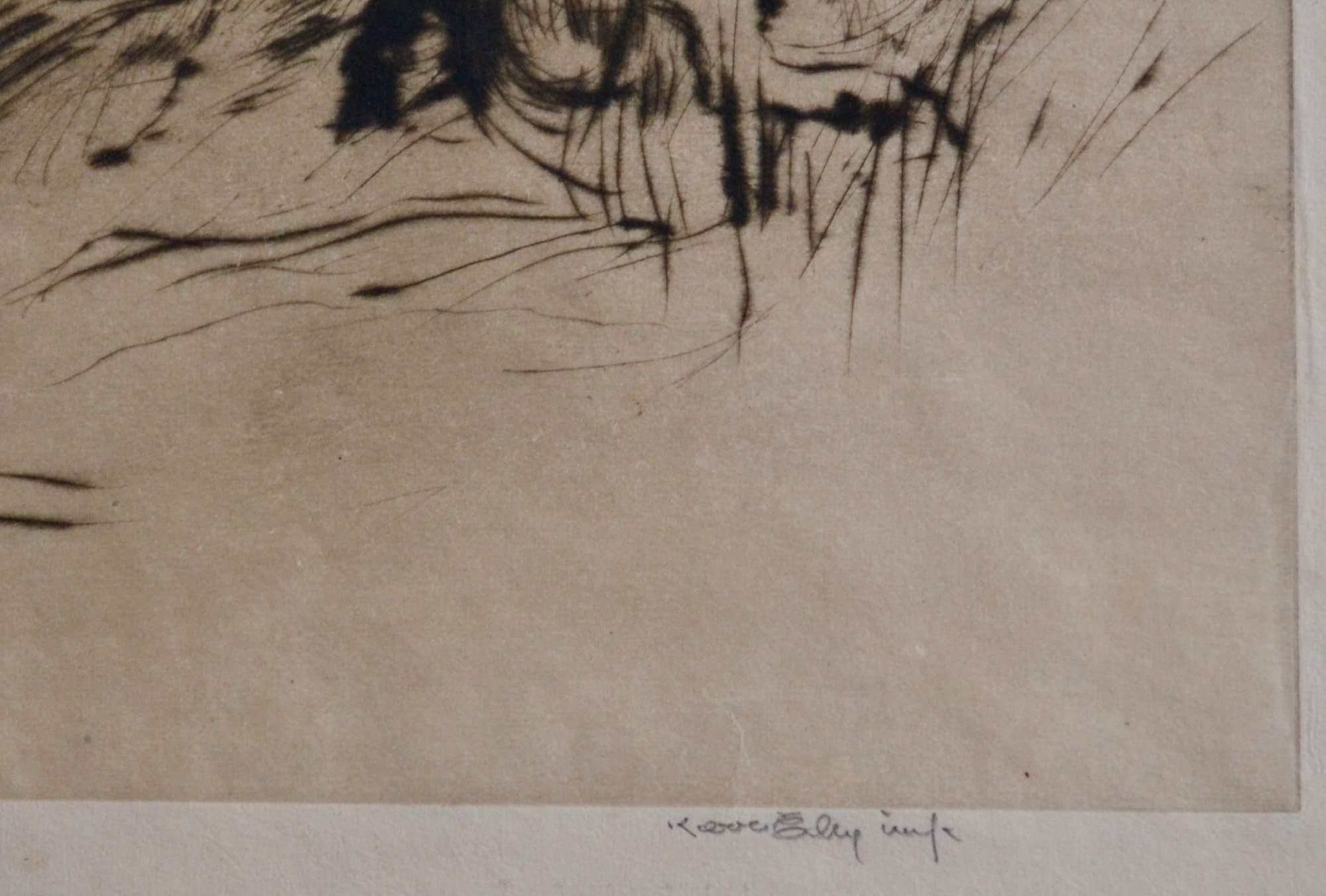 Kerr Eby (1889-1946) was a Canadian printmaker born in Tokyo, Japan, where his father was working as a missionary. Eby is perhaps best known for his war images, having served in both World Wars. "The Great Black Cloud" is one of his most famous prints, depicting an ominous sky above a seemingly insignificant platoon of soldiers as they march across a war-torn landscape.