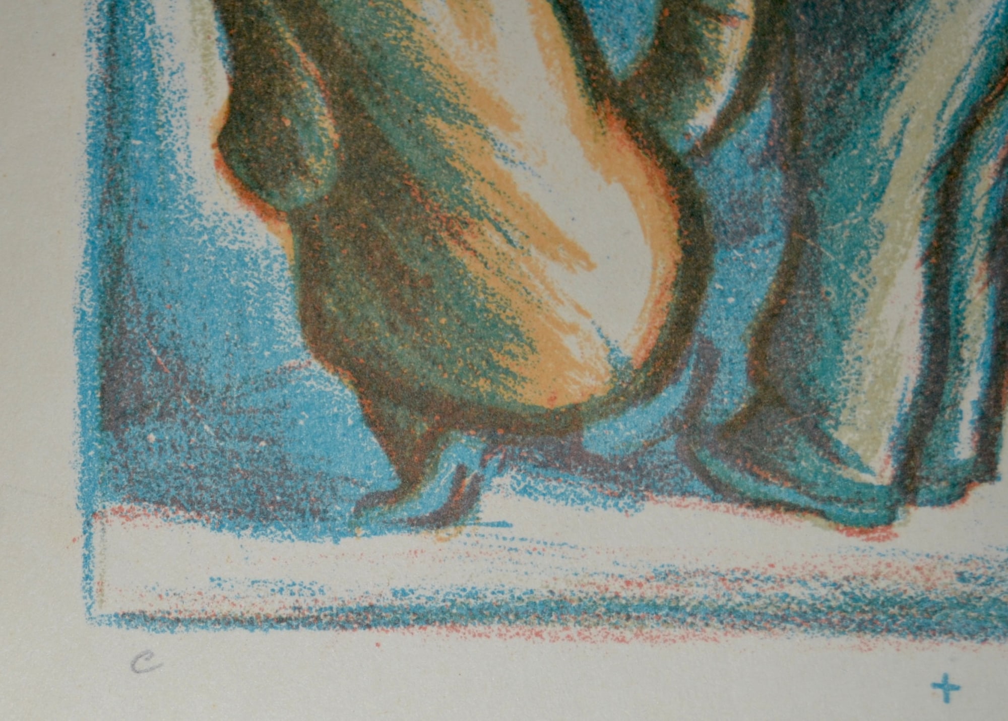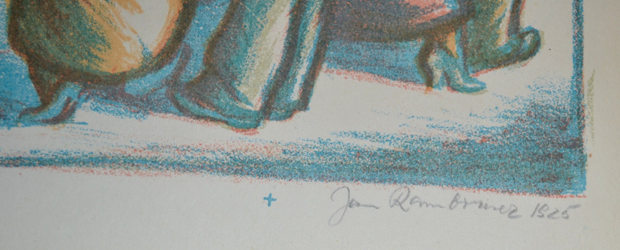 - Signature: Signed and dated in pencil "[illegible] 1925" lower right-hand corner. The letter 'C' is written in pencil lower left-hand corner. A green '+' can be found in the center just above the image as well as just below the image.