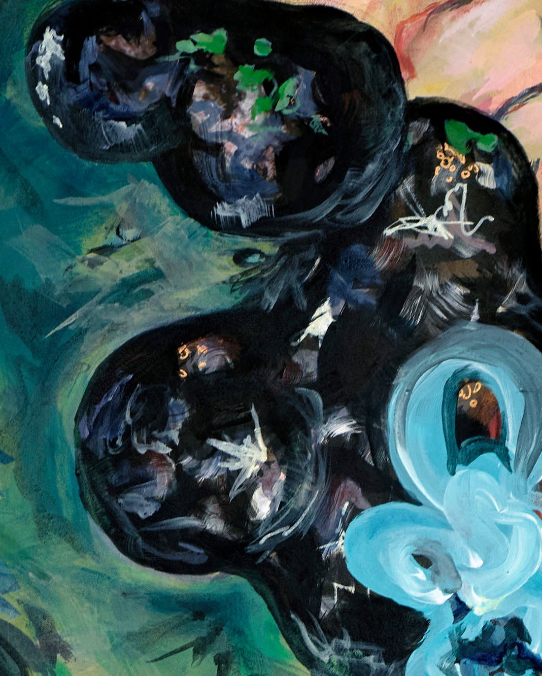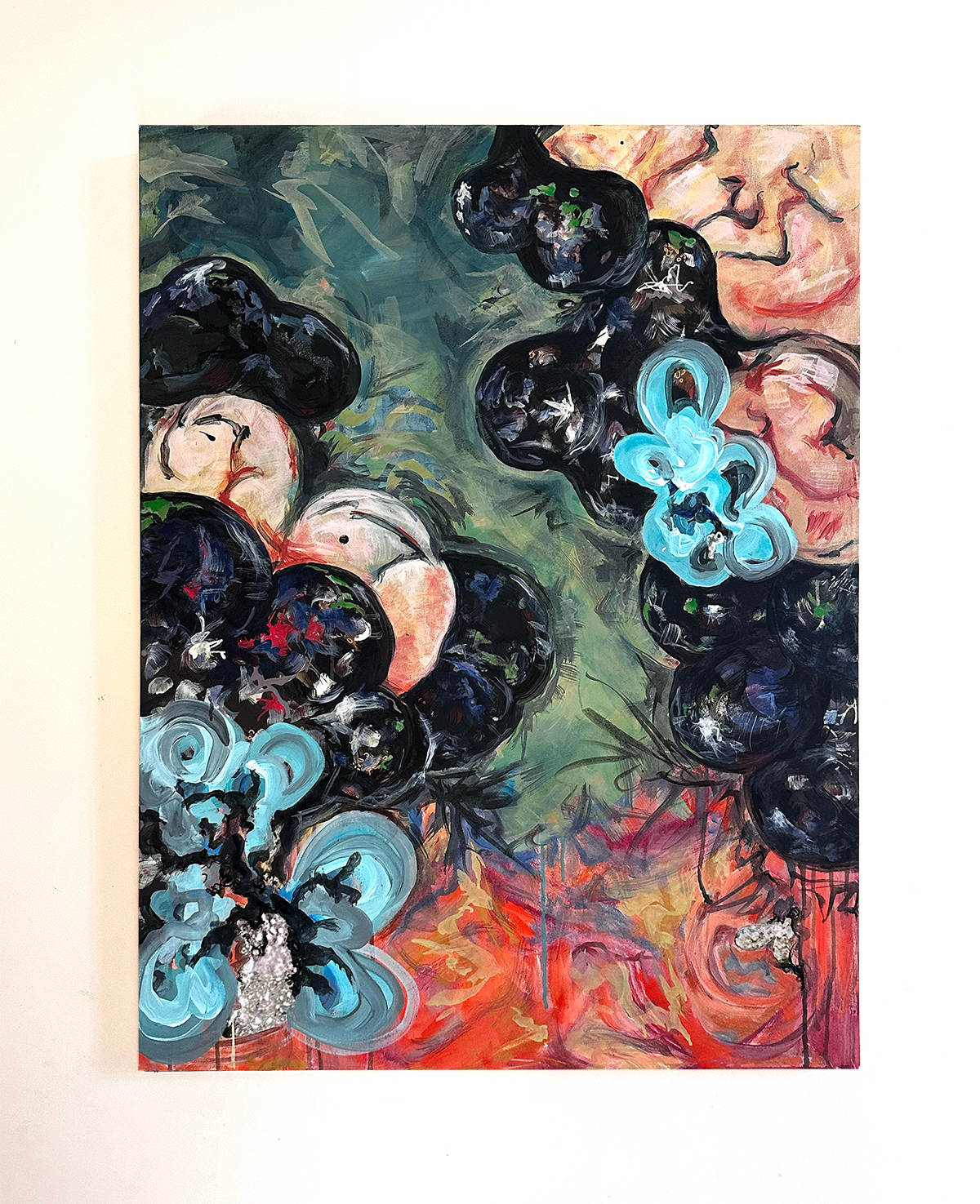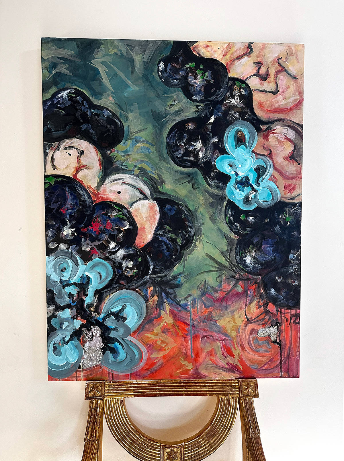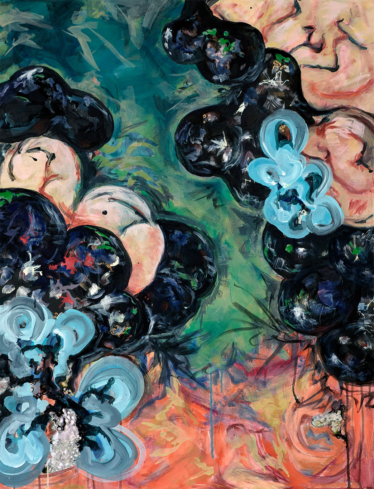This painting was inspired by cross-sections of coral, found washed up on a beach in Hawaii, that I reimagined through abstract painting. I reshaped and layered the natural patterns, creating flowing textures and harmonious colors that suggest underwater rhythms. The composition invites a dreamlike exploration of coral’s form beyond the familiar.