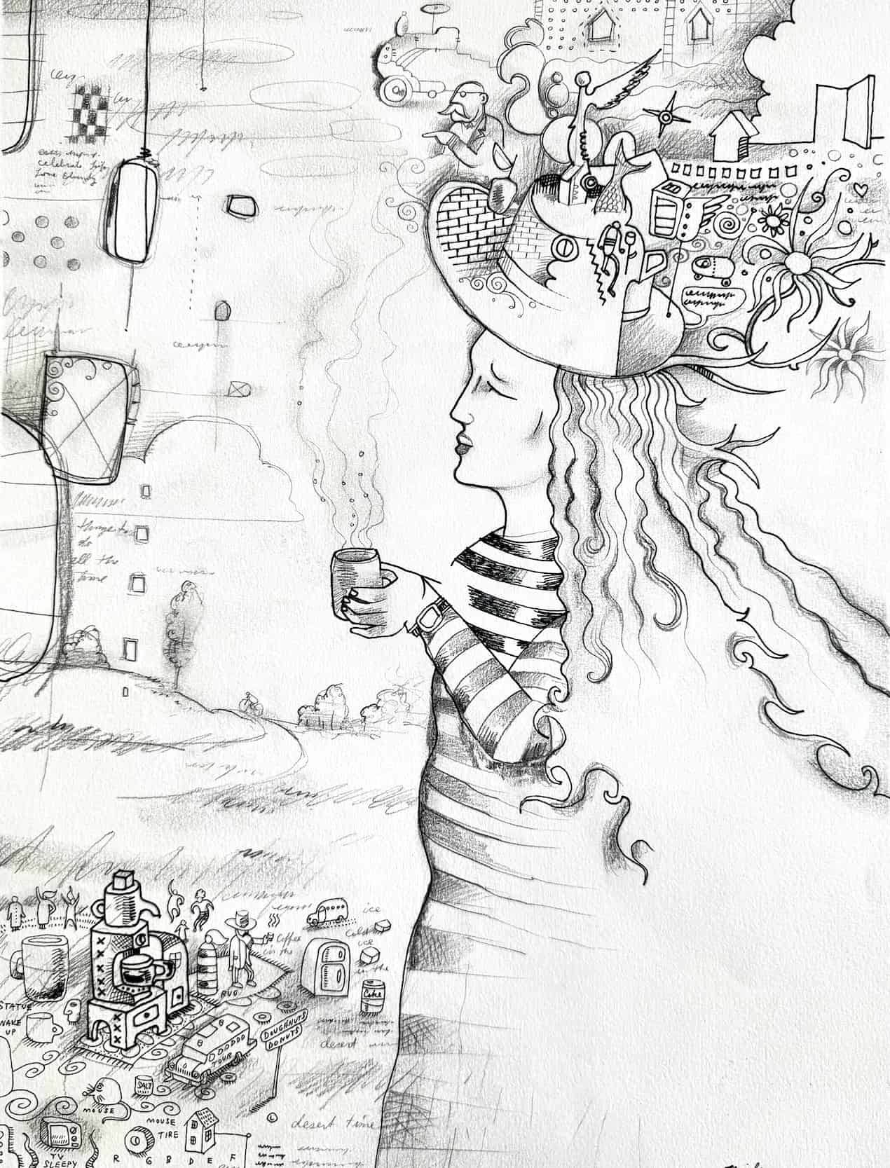 Lady Drinking Coffee Sketch