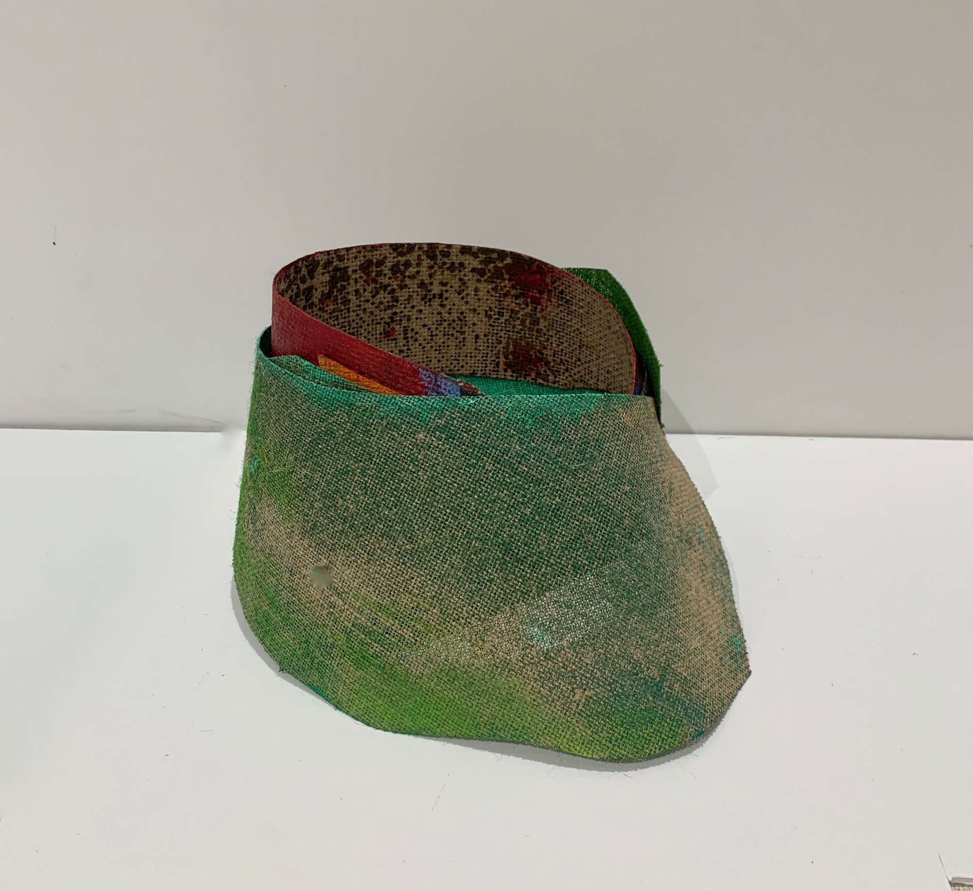 Part of a body of work of tri dimensional paintings titled Knots, developed in 2024. They are made of jute, painted with oil and/or acrylics and held together with brass wire stitches.