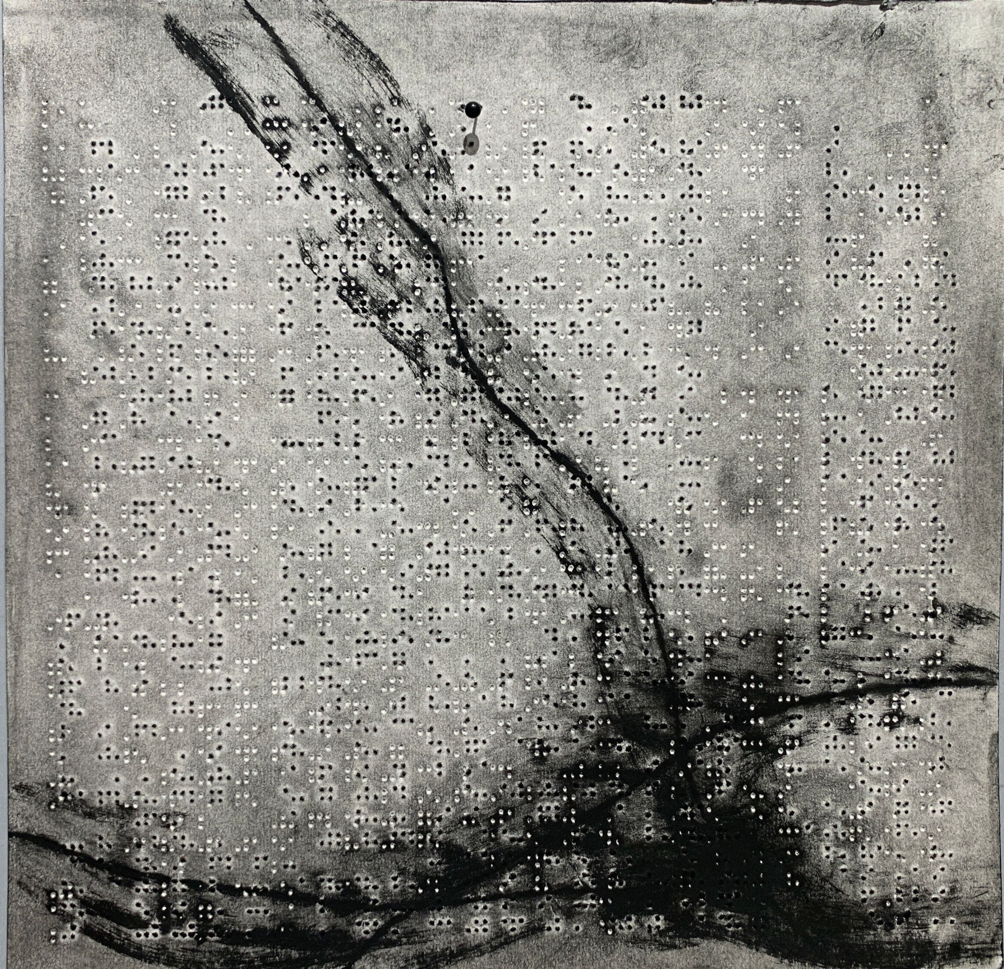 Crossing paths by Maria Mimma Scarpini  Image: This is part of a series of charcoal drawings on Braille embossed magazine paper executed mostly with frottage technique.