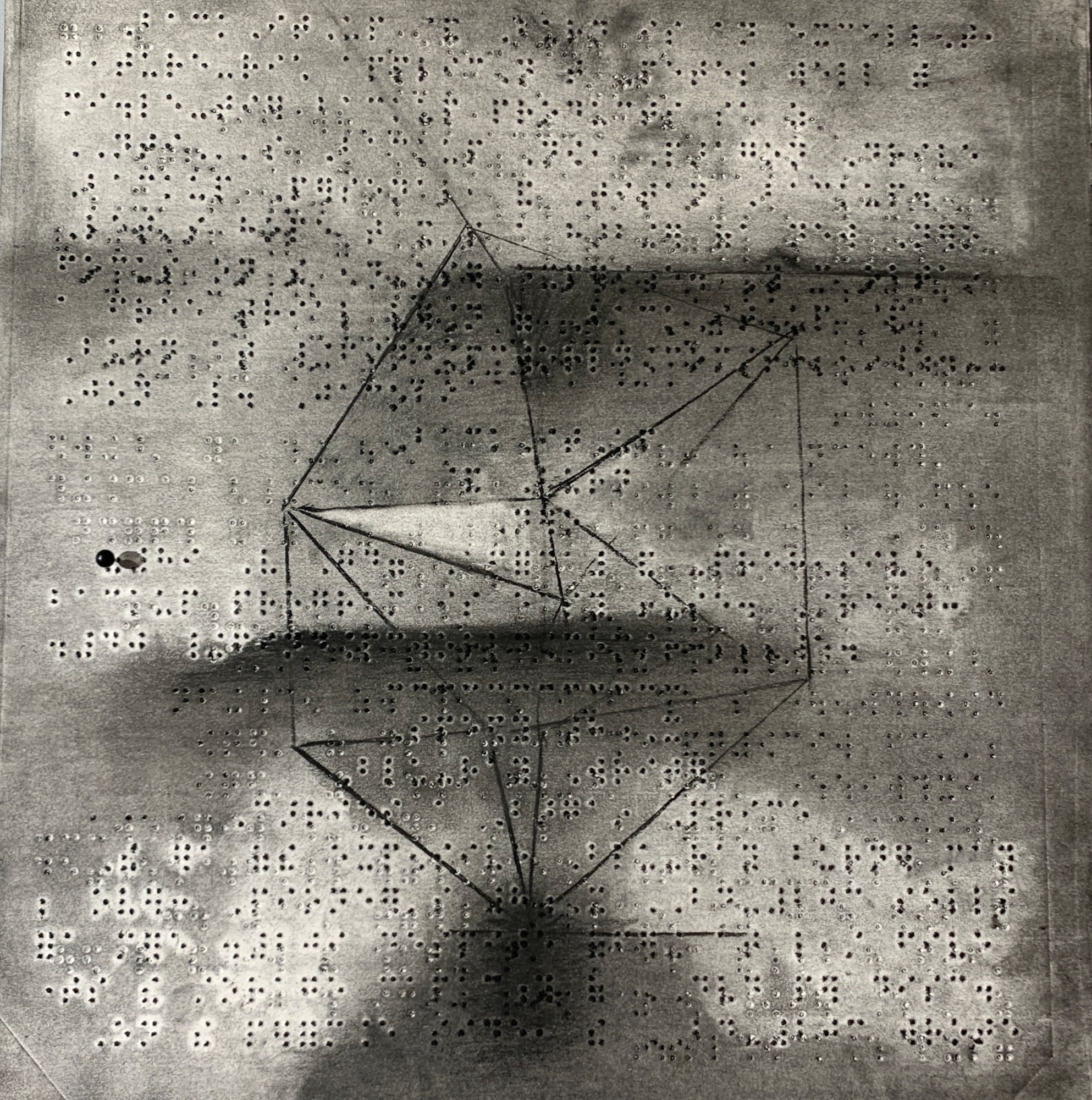 Part of a series of charcoal and graphite drawings on Braille embossed magazine paper executed mostly with frottage technique.
