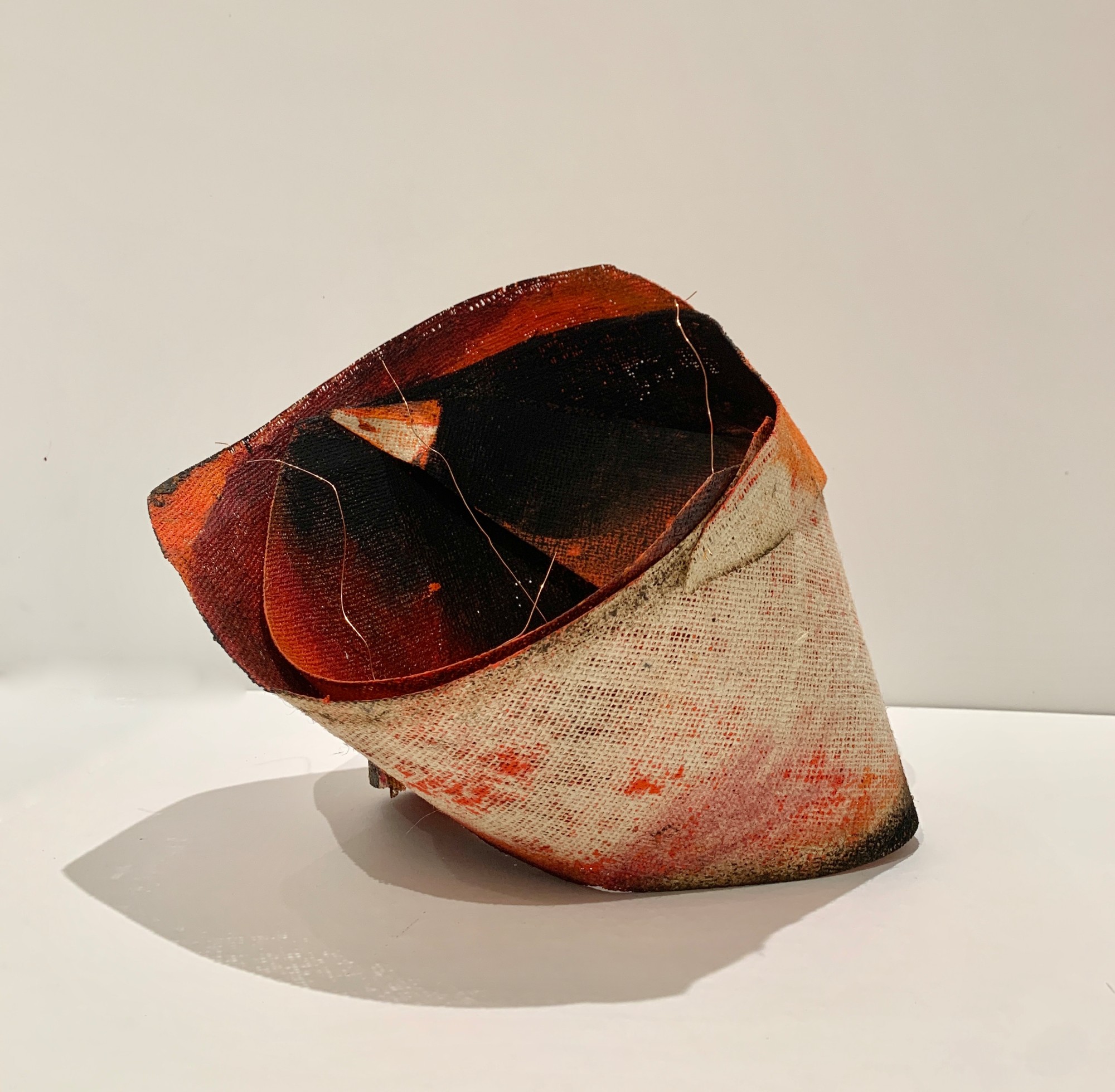 Part of a body of work of tri dimensional paintings titled Knots, developed in 2024. They are made of jute, painted with oil and/or acrylics and held together with brass wire stitches.