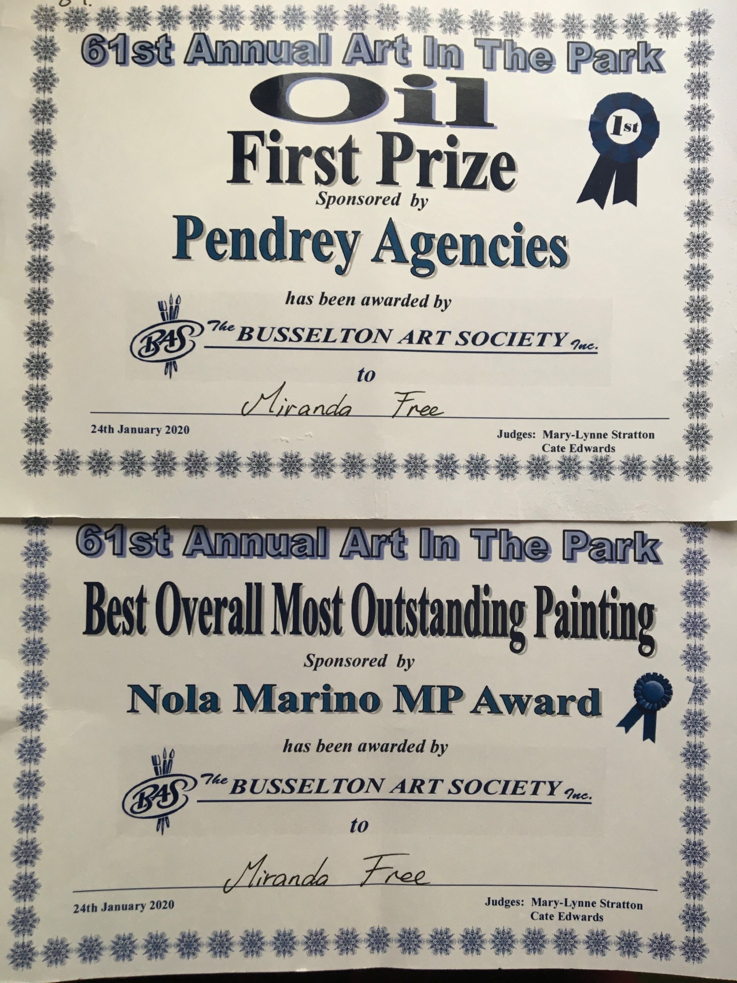 Available as a limited edition A3 print. An Infinity of Jonquils won two awards at the 61st Busselton Art in the Park exhibition: First for Oils and Best Overall Most Outstanding Painting. This piece is painted on a birch cradled panel and does not have a frame.