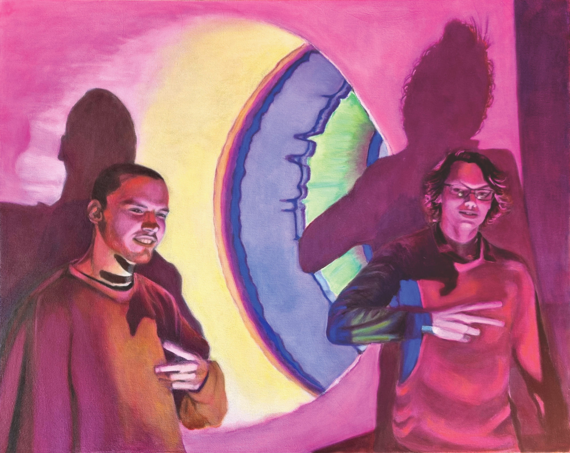 Two of my sons, Jasper (aka Freej), an artist who works with analogue video to create visuals at gigs and for music videos, and Vincent, and electrical engineer who likes to created electronic devices, some that assist Freej in his creative pursuits. This work is a visualisation of their bonds, both genetically and their individual interests.