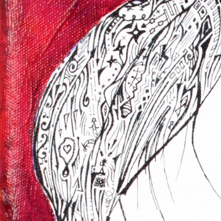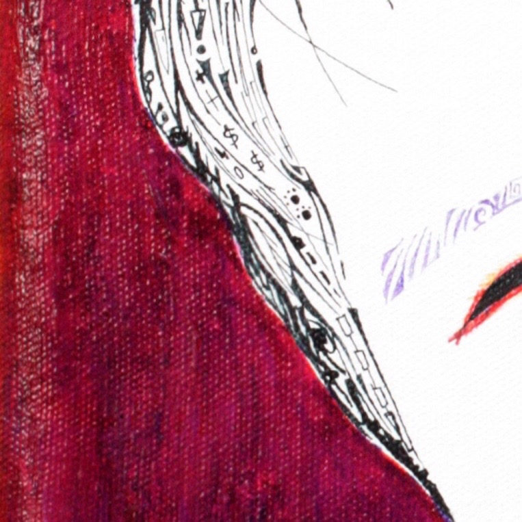 Oil Painting + Liquid Acrylic with Dip Pen on Canvas