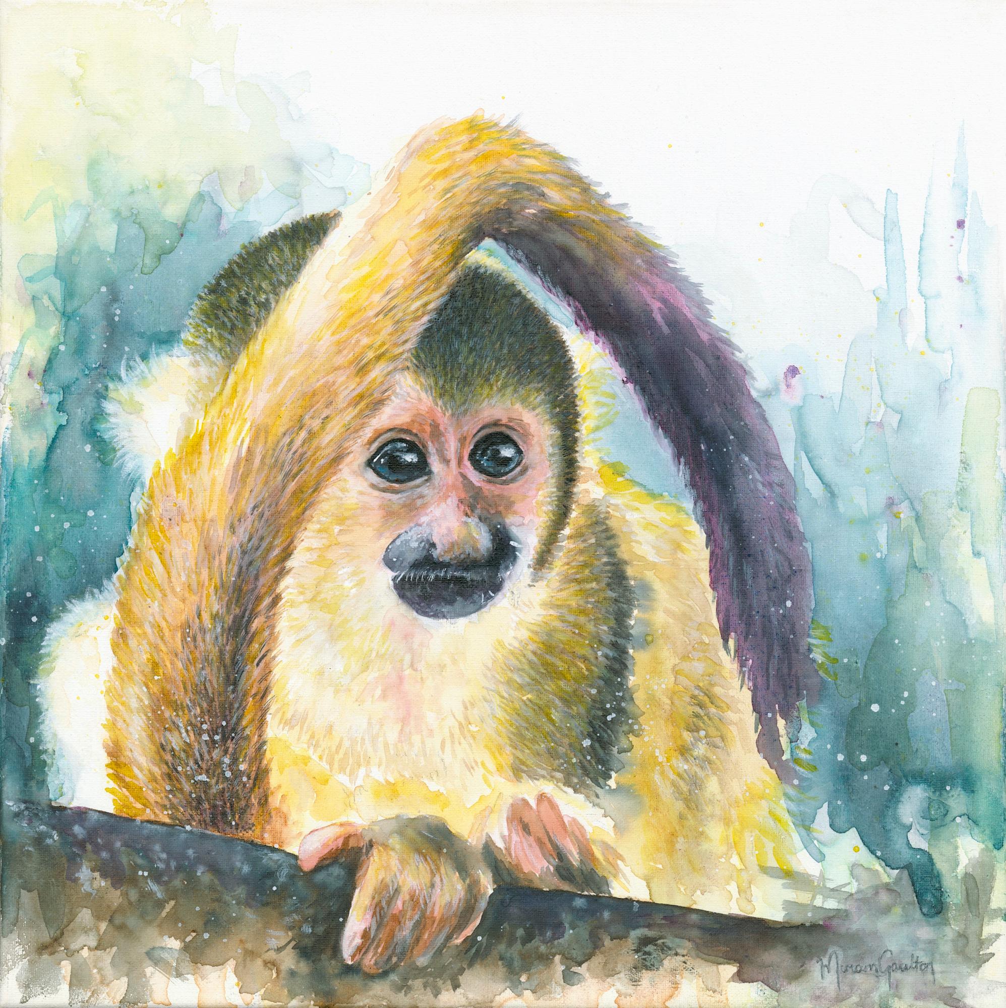 This Squirrel Monkey bub was painted on location in front of the Squirrel Monkey enclosure at Perth Zoo on Mothers Day 2024. The baby is one of the two bubs born early 2024.
