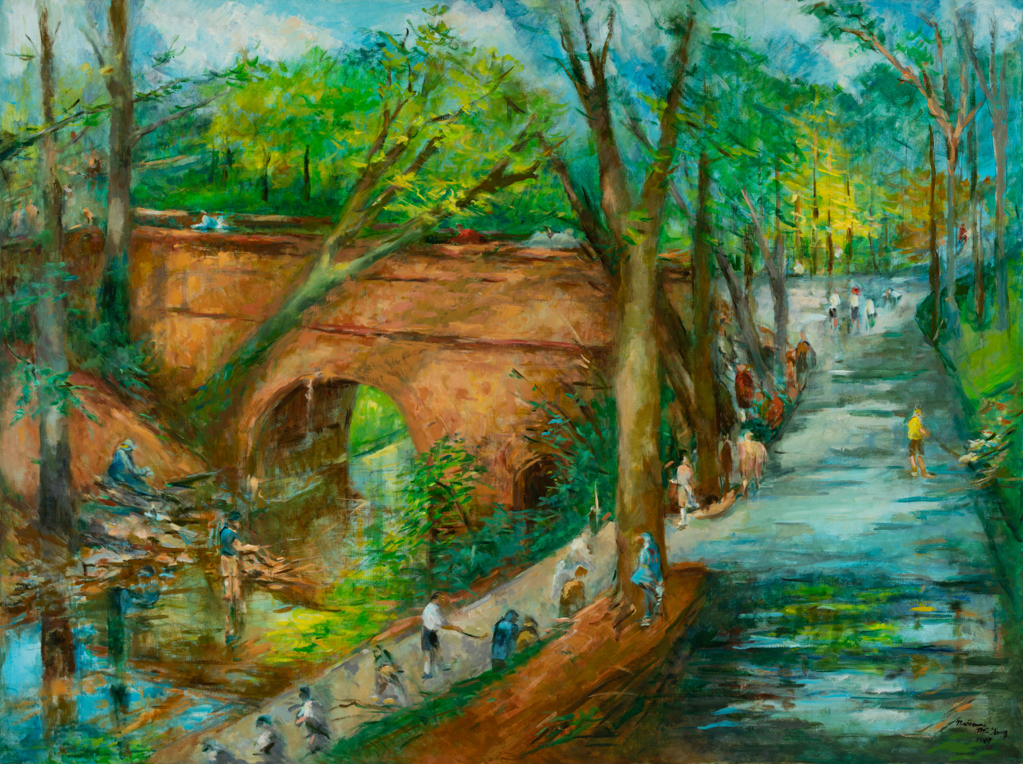 One favorite spot to paint or draw is the stone bridge with runners going by. This work was fun to do with