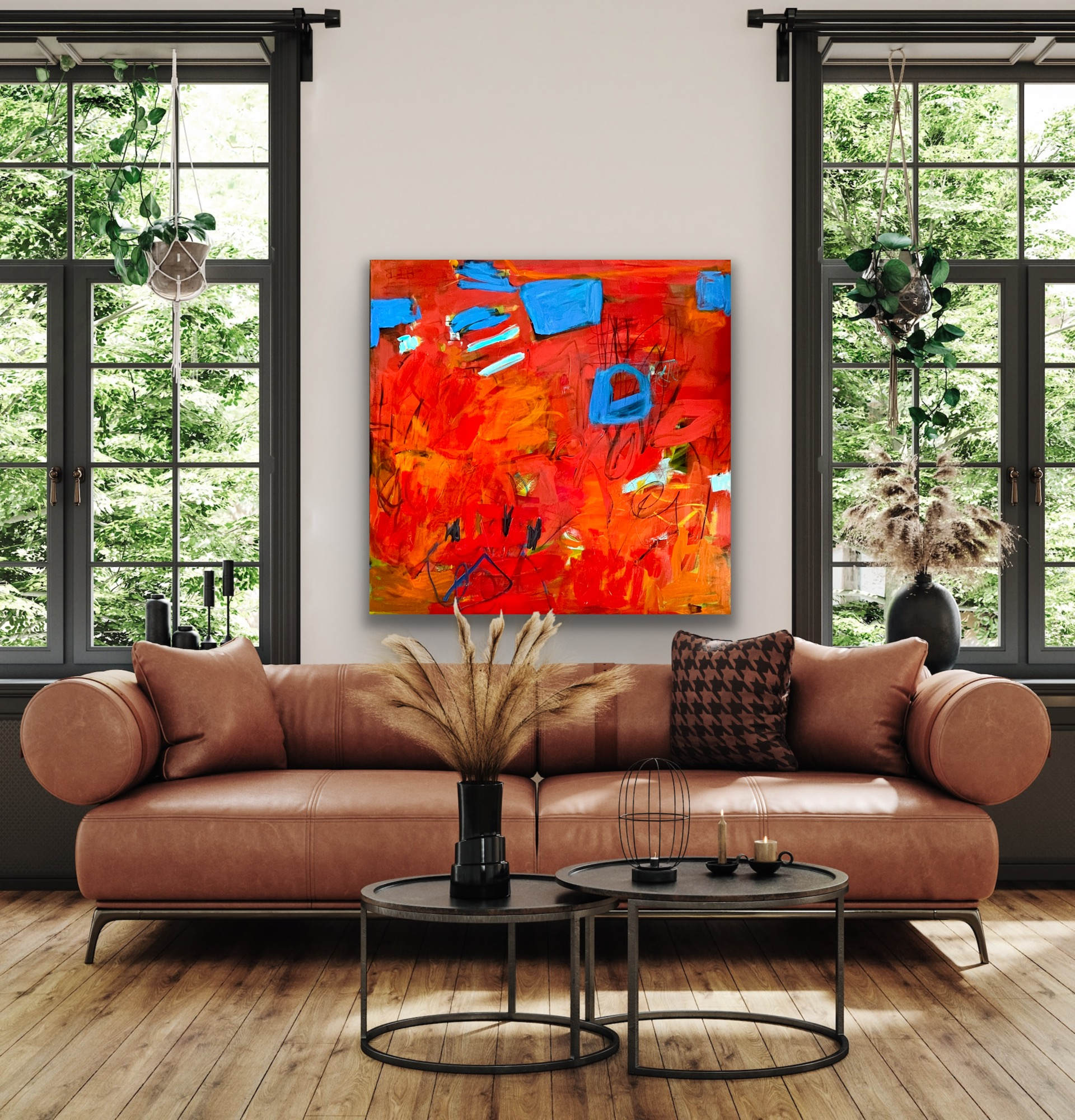 • Beauty Shines In All That You Can See 48'x48" ( red one) with the blue squares