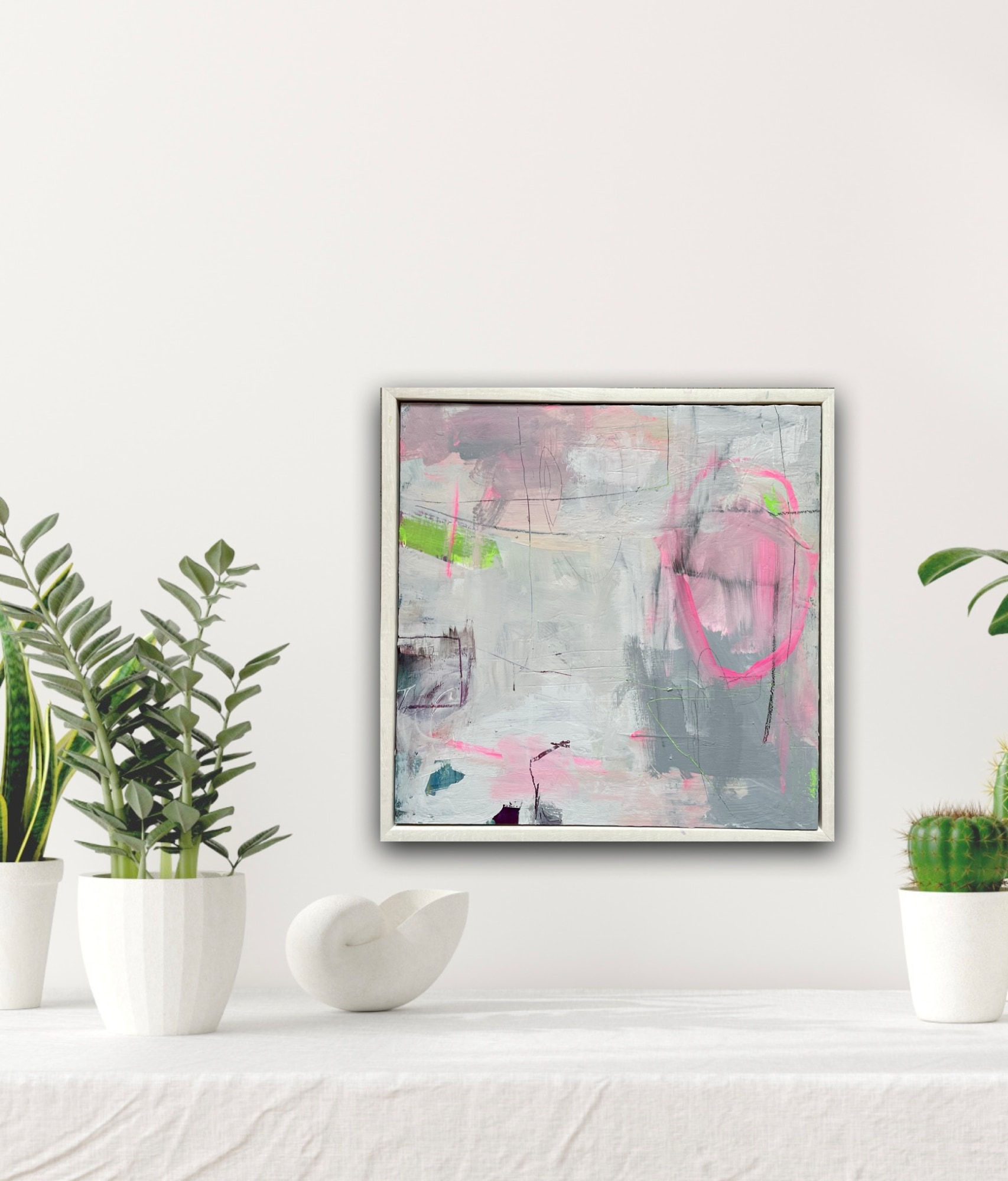 They explore lines and spaces, where the edges meet—mixed media, collage, graphite, and pencil. Miriam Traher is an intuitive artist, creating mixed media abstracts: led by colour, shapes, marks and lines as they are layered and responded to. Her work is vibrant, expressive and full of visual texture, bringing life and joy to homes. The sides are natural hardwood.