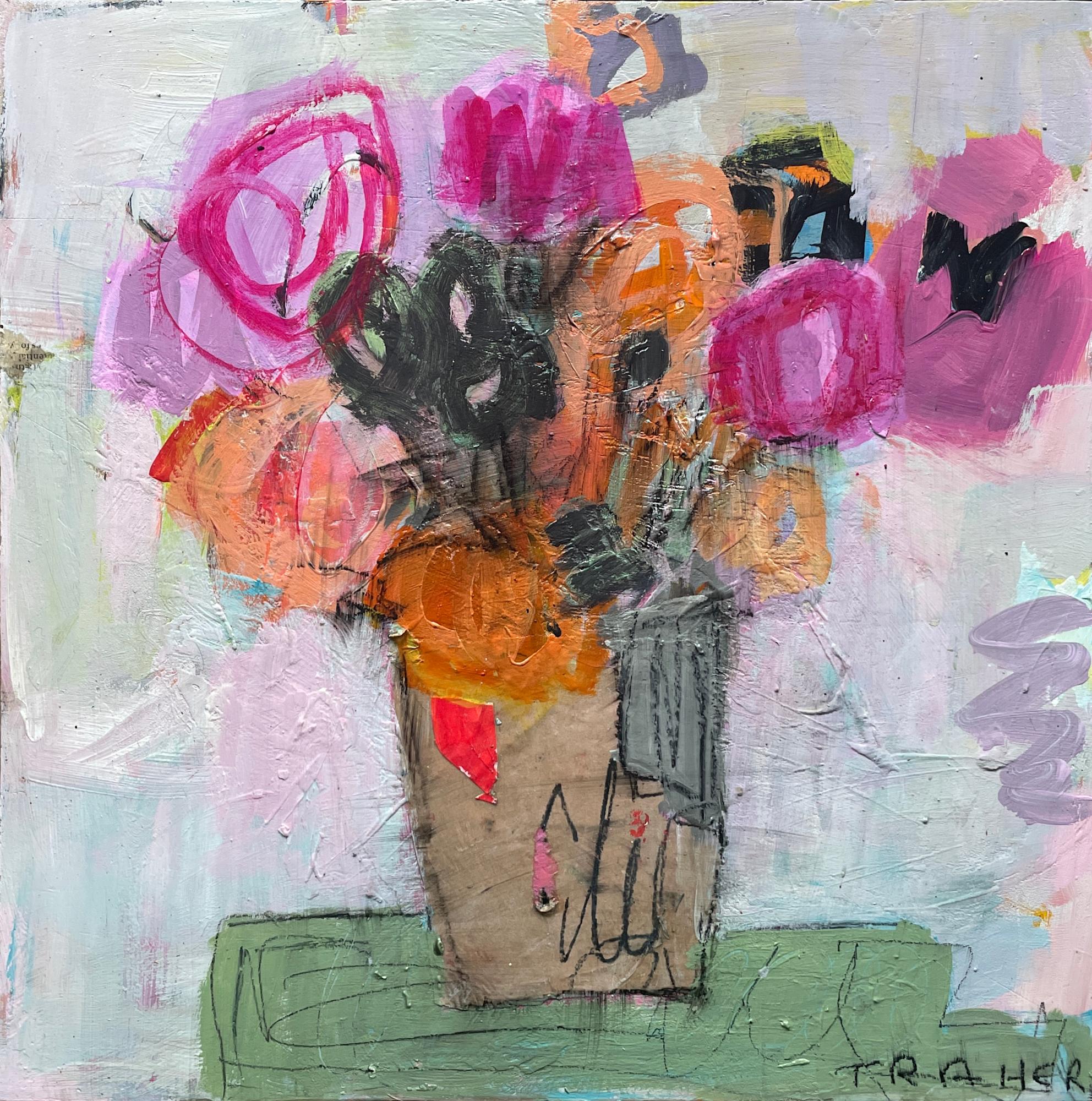 • Acrylic, collage, various mark making crayons on board, maple drop in frame