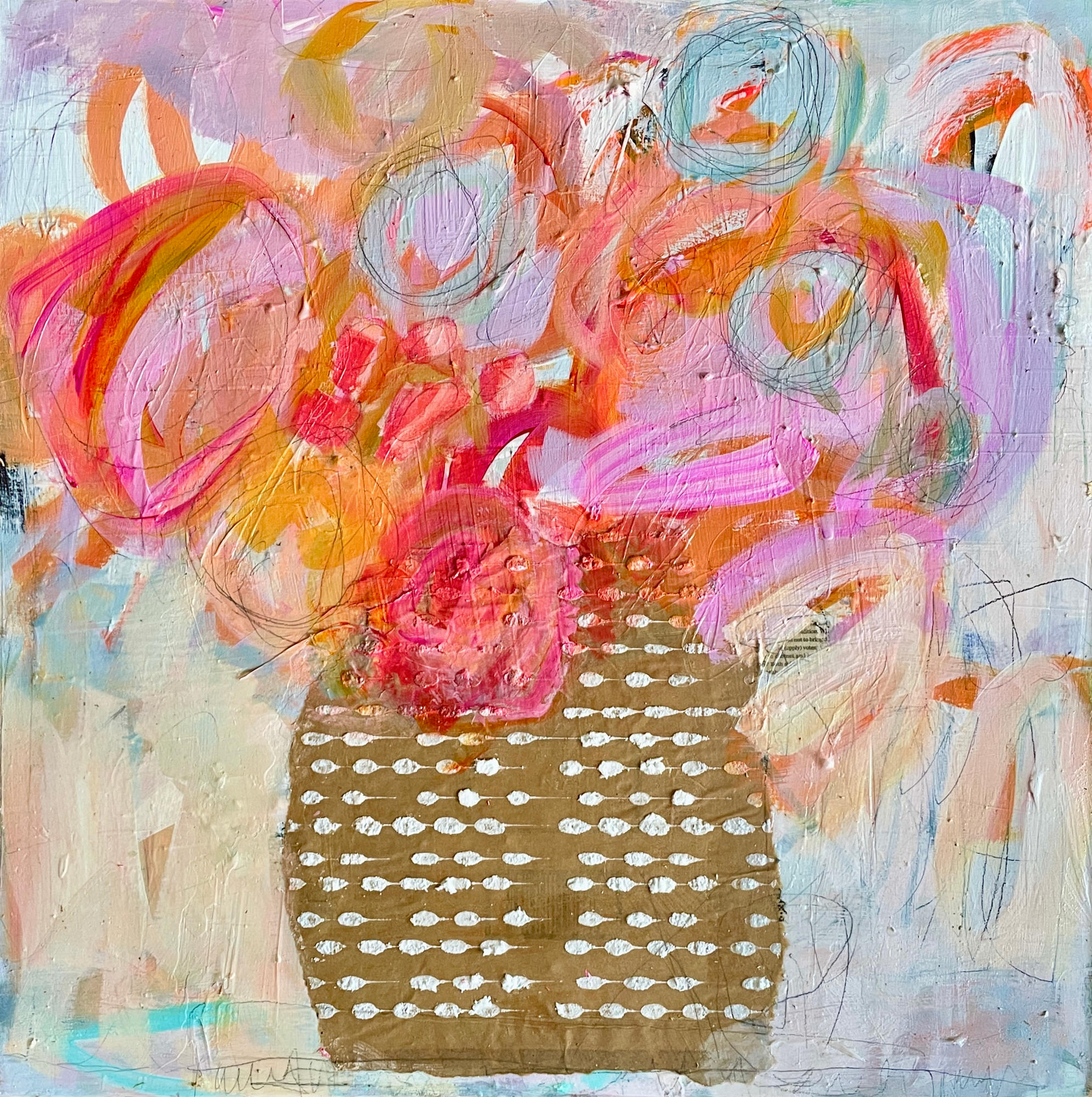 What started as a day of fun painting with a friend, chatting and creating, spying the inside of the Amazon bag, I remember using in another piece that was so fun and just being in the moment of joy, creativity and a great friendship, ended with a piece that wouldn't take no for an answer. I thought it was too quiet, that it needed more punch, more wow, more something and yet its quiet voice became emphatic, with a voice of authority, it is time to take me seriously, I am perfect just the way I am. And so it is done; the quietness is equally powerful, coming in close and enjoying all the details. She is a bit of a quiet one, and she asks for a more intimate relationship, one that involves enjoying a quiet evening by the fire. A foot on the table, savouring a glass of wine if that is your thing, and unwinding from a busy day, and just enjoying in the moment.