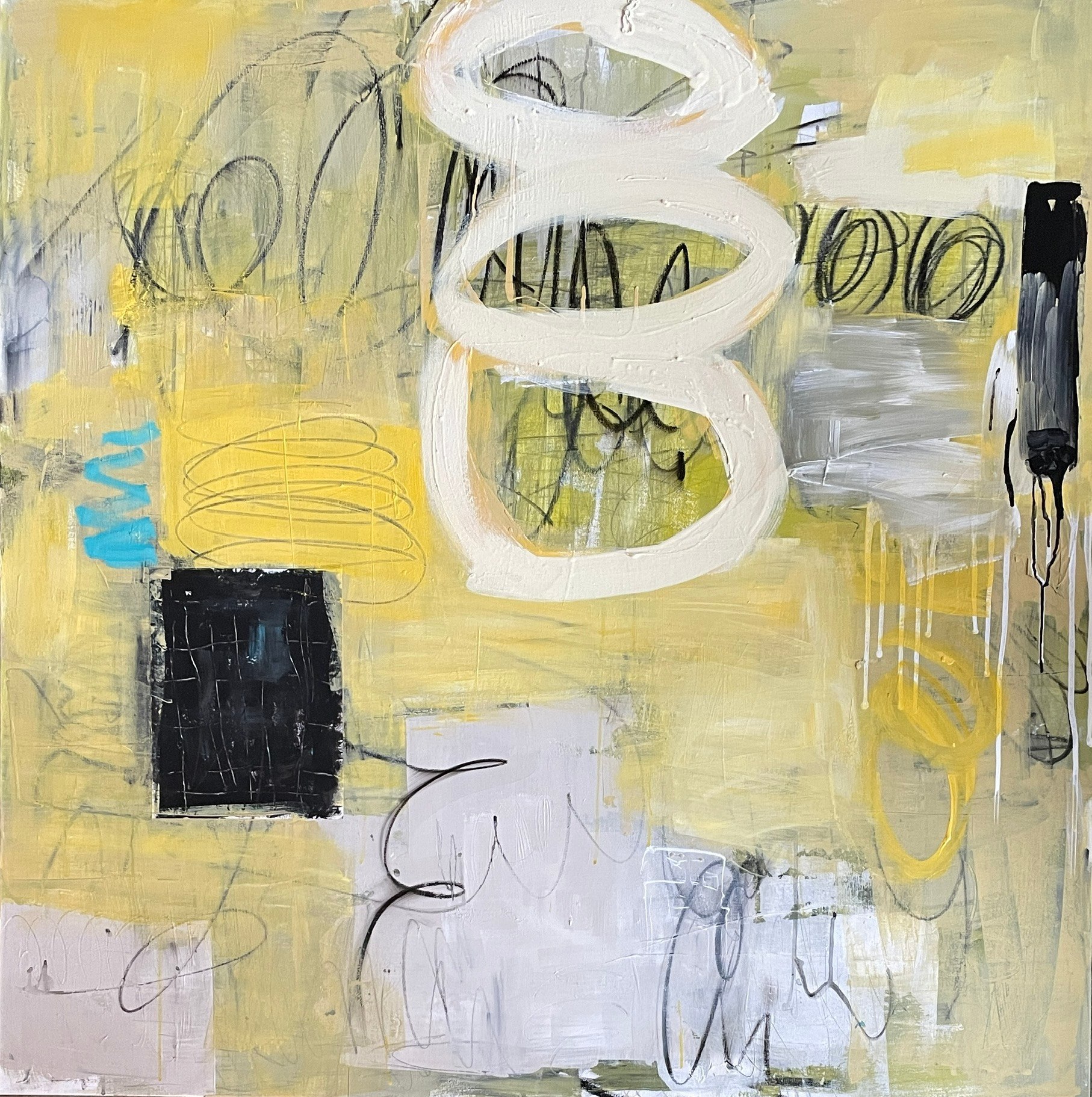 Abstract mixed media paintings, exploring the relationship of shapes and spaces, exploring history, revealing layers of the past and playing with my expressive line to tell my story through my art.