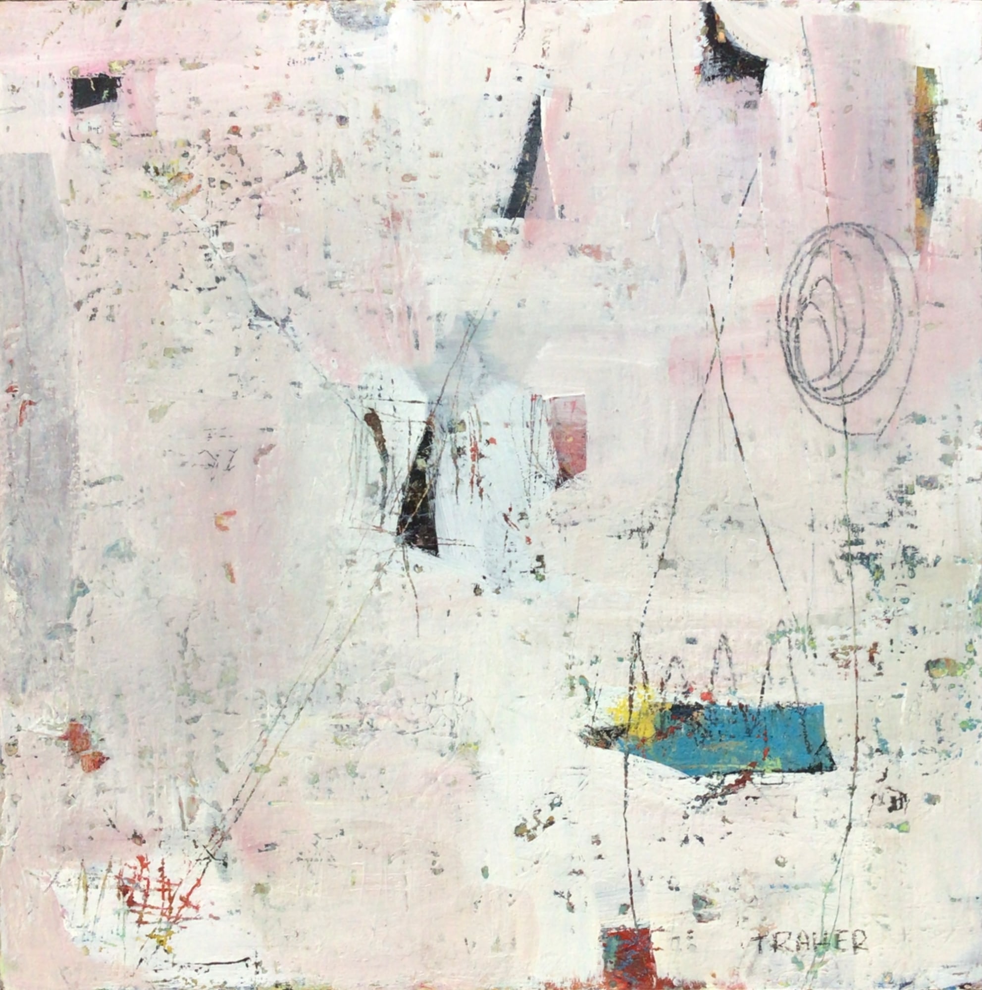 Exploring line and space, where the edges meet. Mixed media, collage, graphite, pencil. Miriam Traher is an intuitive artist, creating mixed media abstracts: led by color, shapes, marks and lines as they are layered and responded to. Her work is vibrant, expressive and full of visual texture, bringing life and joy to homes