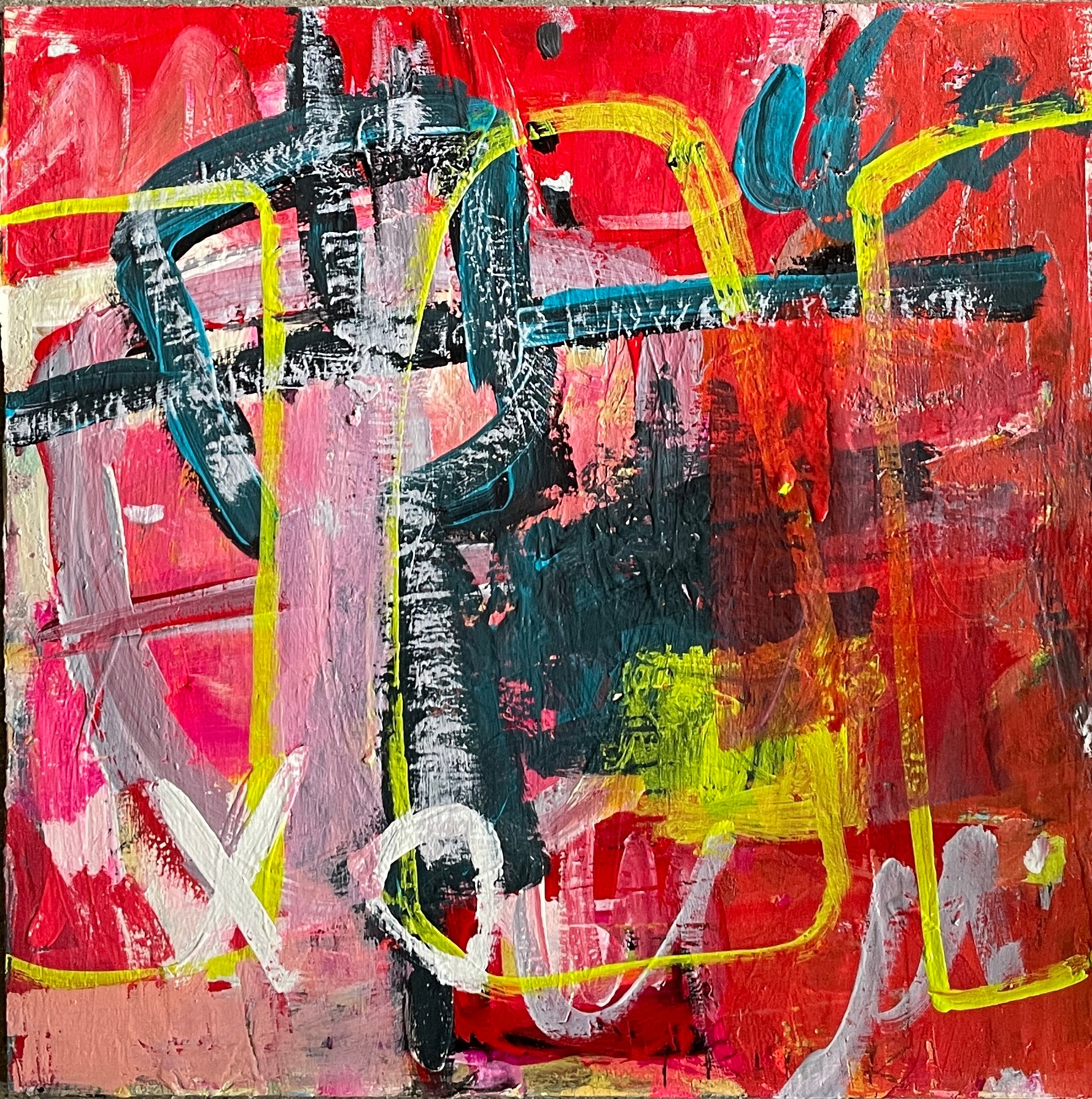 Bold lines, big shapes, strong and dynamic to bring a space to life. Organic in nature, the shapes and colours are the accumulation of the bits and pieces that have struck a chord with me on my many morning walks with Murphy. It's about the strength of the land that holds us. It always draws me in, and I bring this back to my canvases, the visual memories that have struck a cord, interpreted in my own voice, the expression of the landscape distilled into line and shape.
