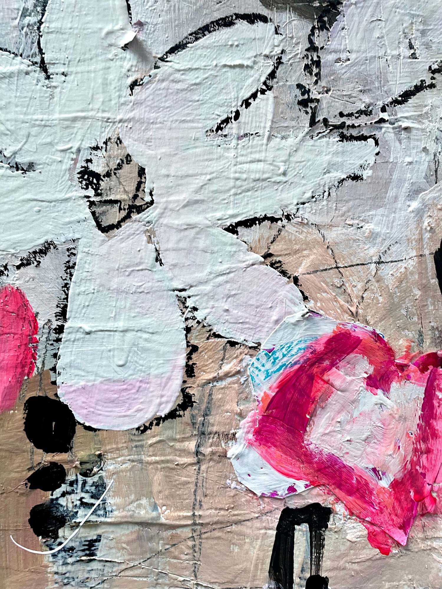 Why I love this piece: “It reminds me of the freedom of letting go. The fluorescent pink scraps were a total accident that ended up making the whole painting sing.”
