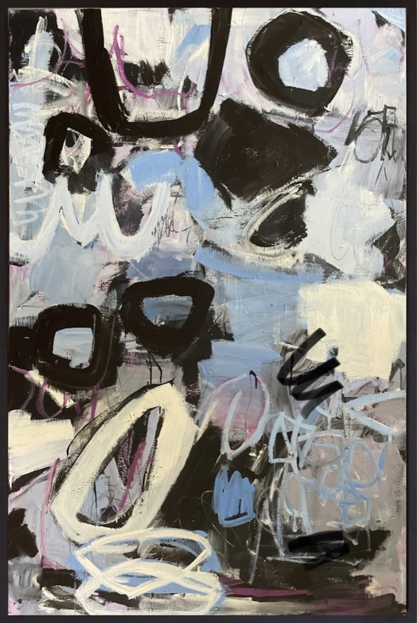 Acrylic On Canvas, framed in black wood frame