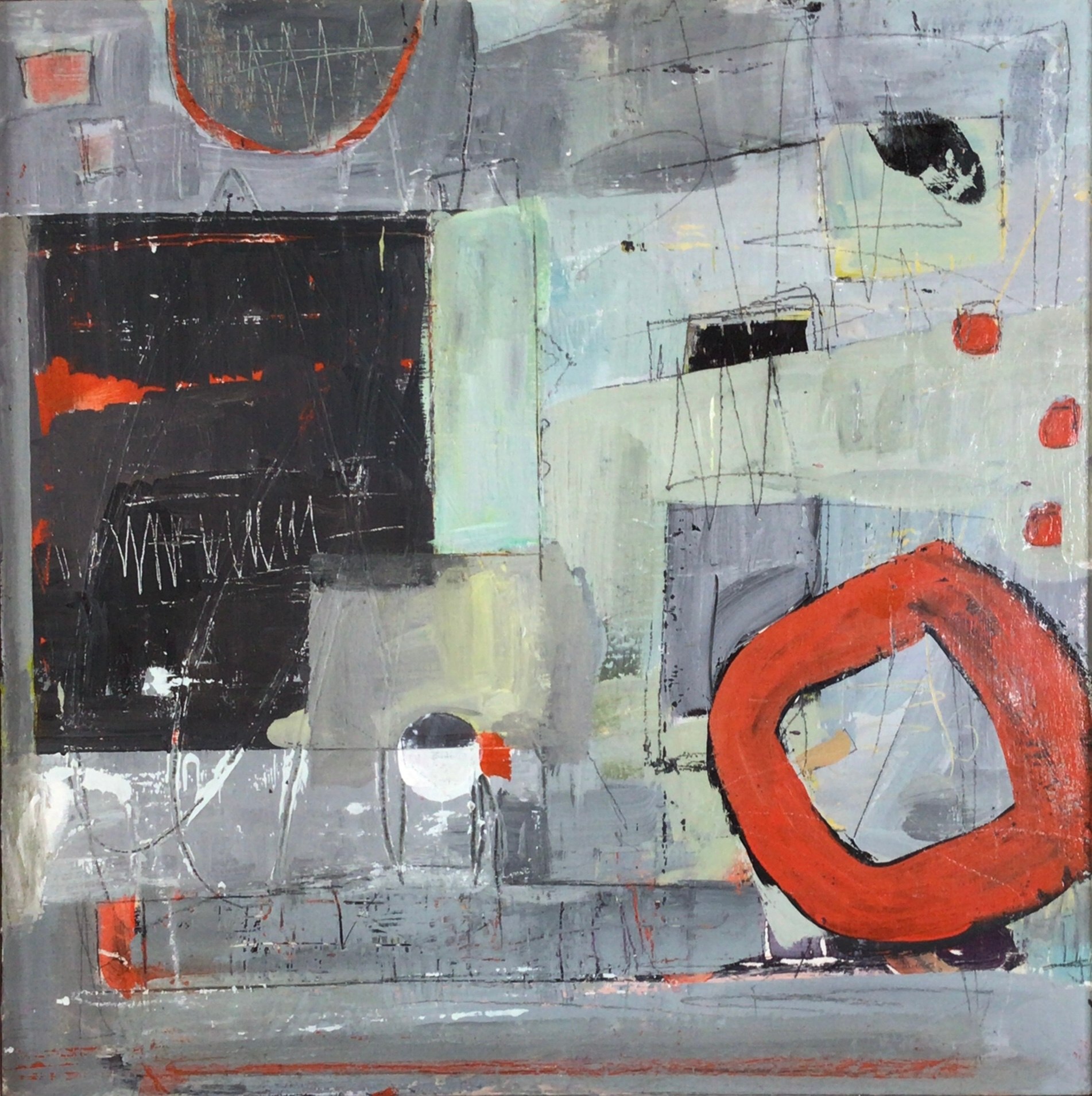 Layer and layers of acrylic, excavated and built to create a story of shape and space. Off-white cradle frame.