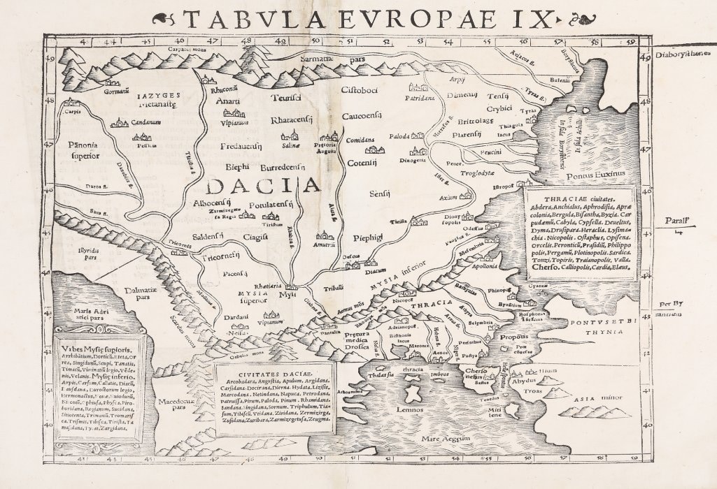 - Dacia, after "The geography of Ptolemy", Basel, c. 1550