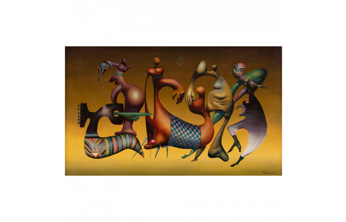 Jules Perahim was a Surrealist Romanian artist of Jewish origin. During the 1930s, his paintings and drawings remark themselves through a powerful fantastic vision, and a critical sense against an oppressive system of belief and power mechanisms. Taking refuge from antisemitic laws, he travels East in Moldova, Russia and Armenia, returning to Romania in 1945. For a significant period in the 1950s, Perahim contributed to the Socialist Realist style with forum art including public mosaic works and national book illustrations. In spite of his success during the communist regime, he craves more artistic liberty and leaves Romania for Paris, continuing to paint in Surrealist style. His explored themes relate increasingly to the symbiosis of the elements of life, the sensuality of form and matter, and universal communication. His oeuvre was the object of over forty exhibitions in France, and of many other exhibitions in international institutions including the Museum of Modern Art in Rome, the Museum of Art Jerusalem and the Venice Art Biennale.