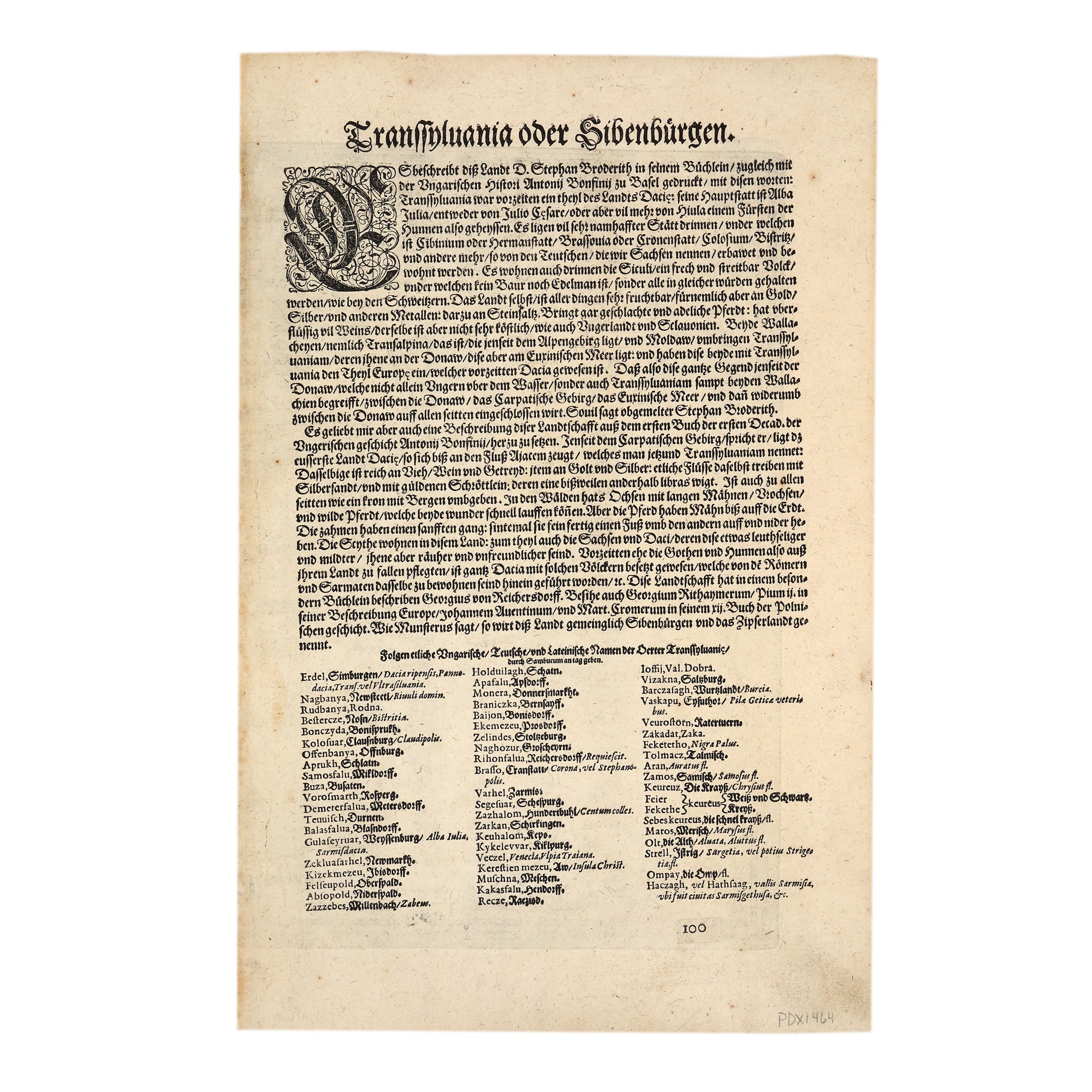 - Transylvania, by Johannes Sambucus (Janos Zsamboky), printed by Abraham Ortelius, Orbis Terrarum edition, Antwerp, 1566