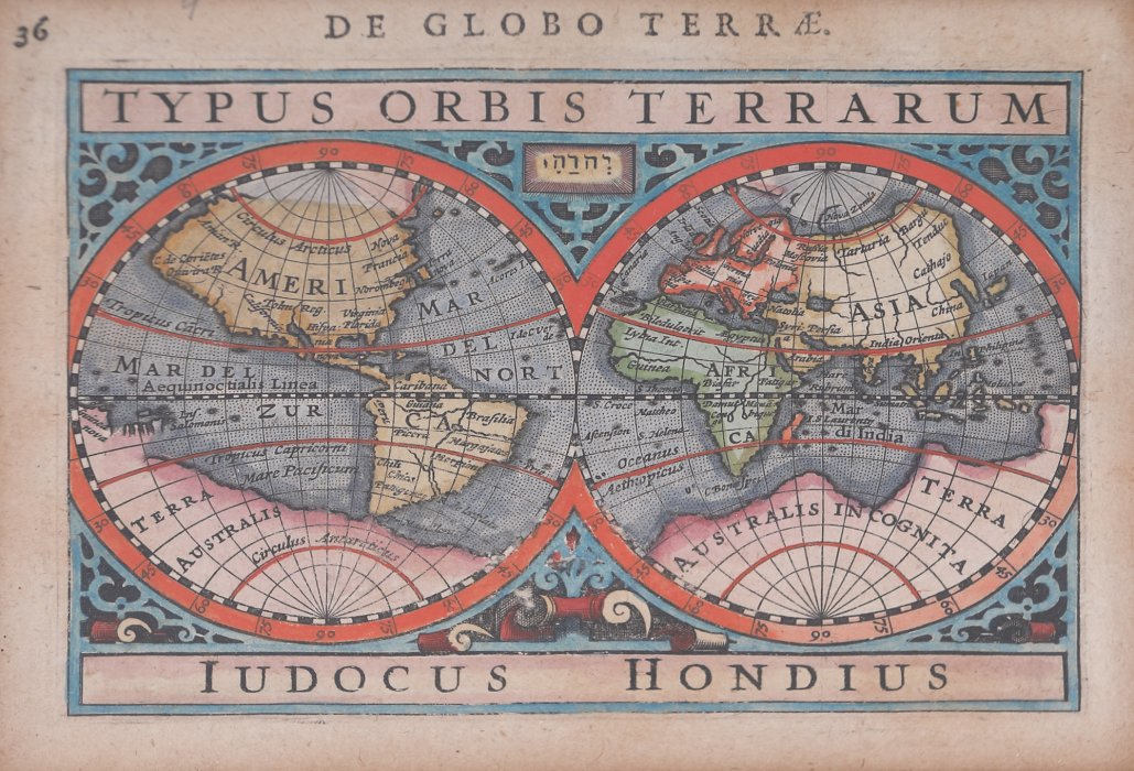 DE GLOBO TERRAE. TYPUS ORBIS TERRARUM IUDOCUS HONDIUS