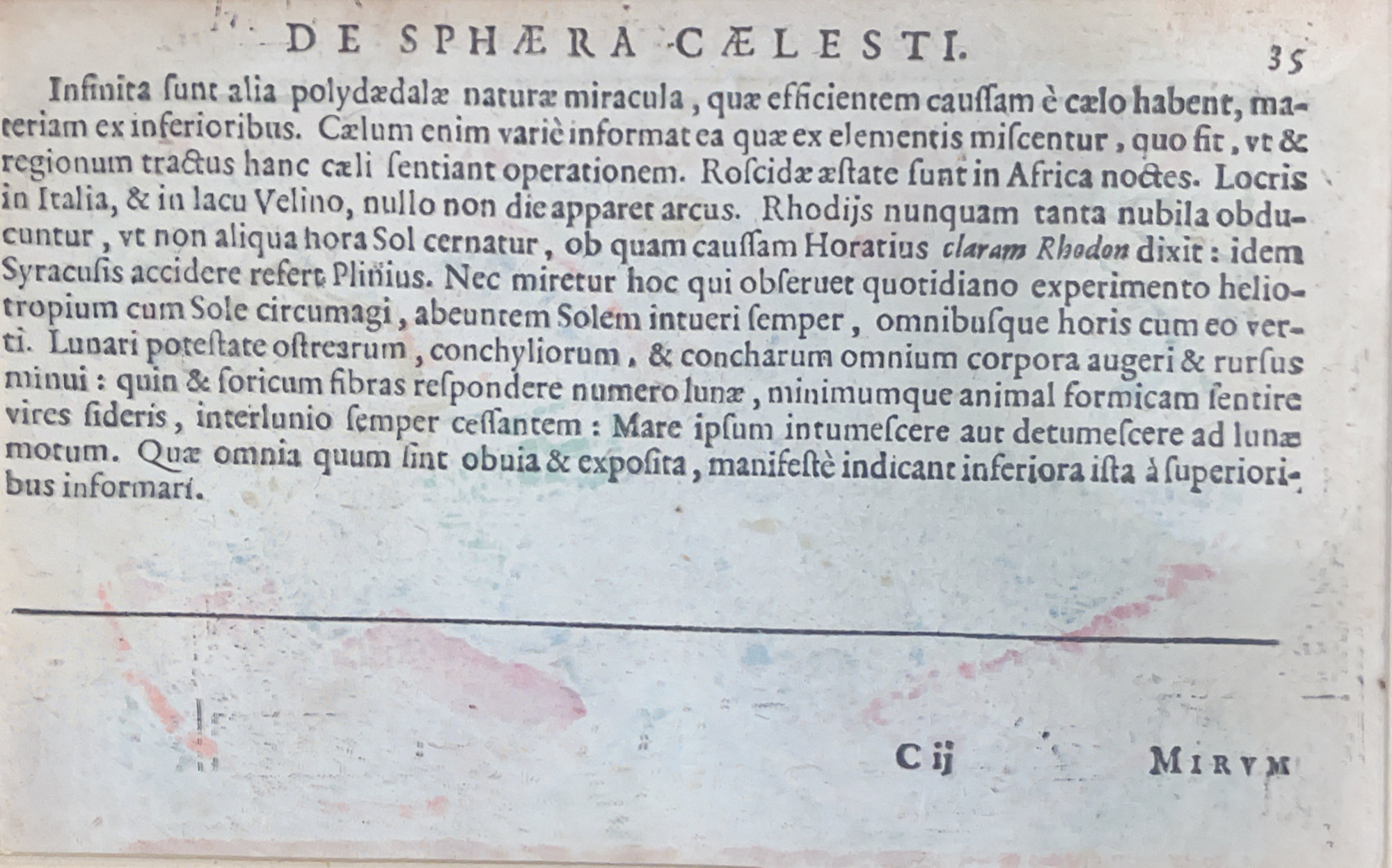 Back side: DE SPHAERA CAELESTI. Infinita funta alia polydaedalx naturae miracula, quae efficientem cauffam e caelo habent, materiam ex inferioribus.